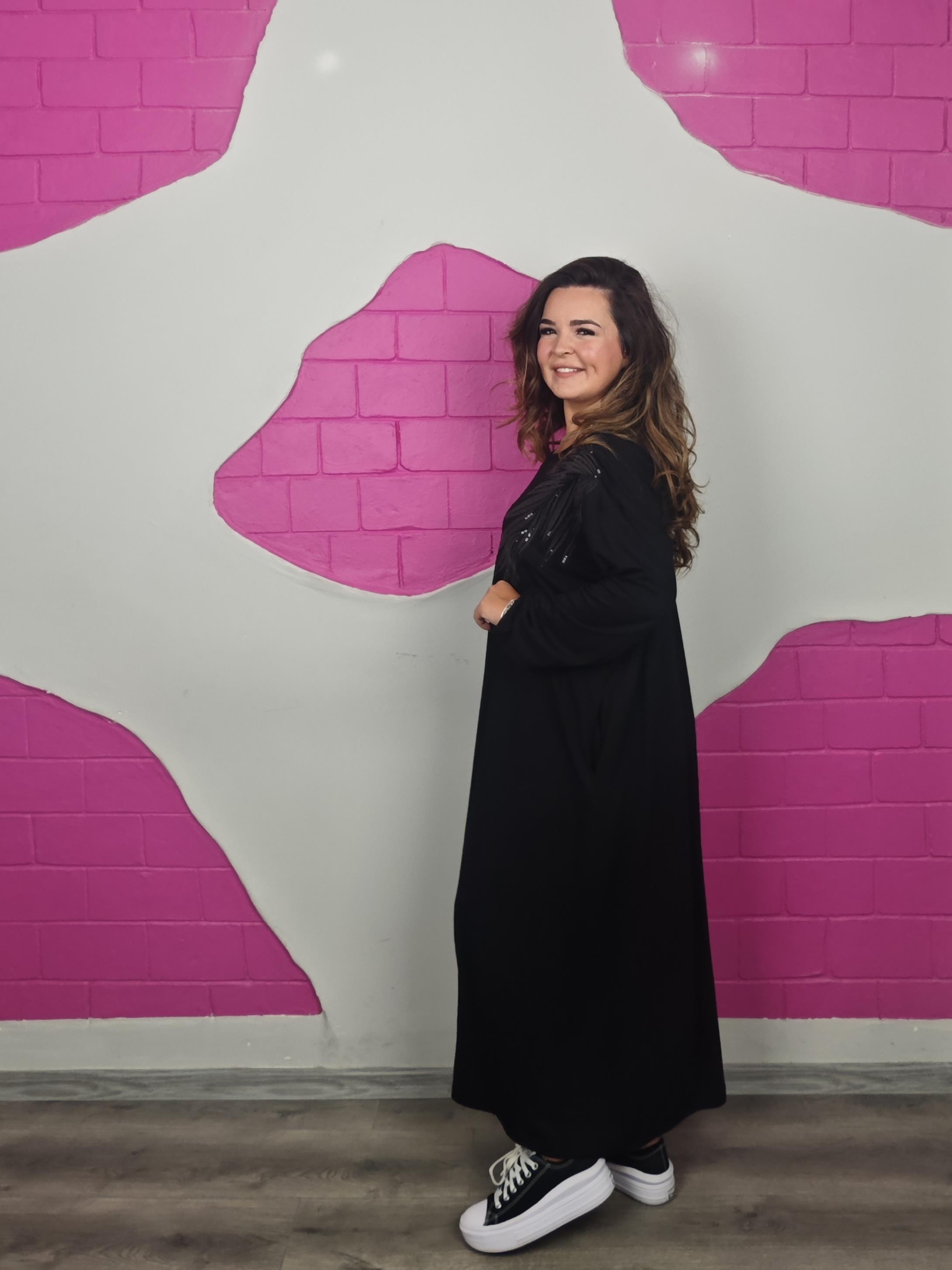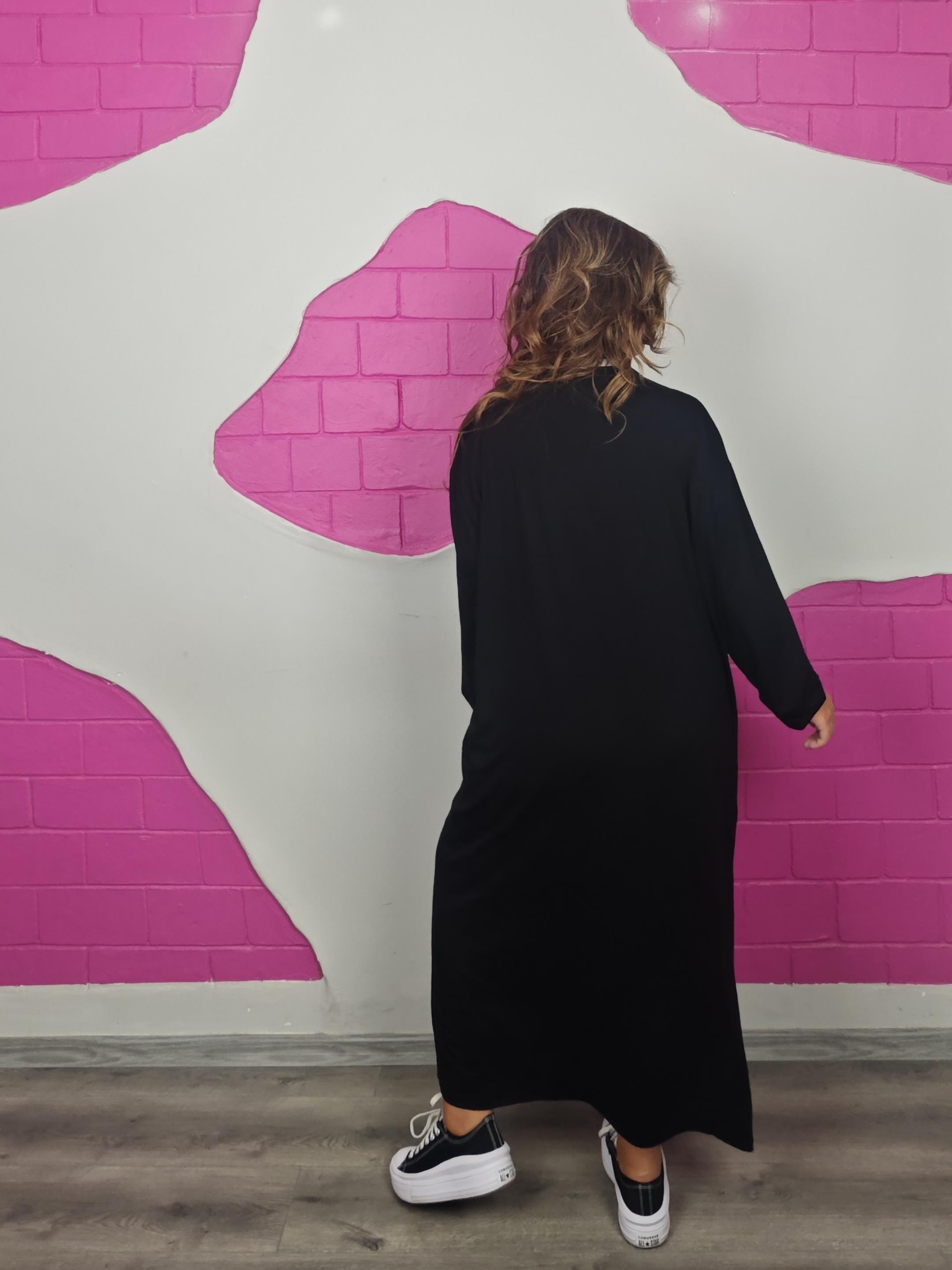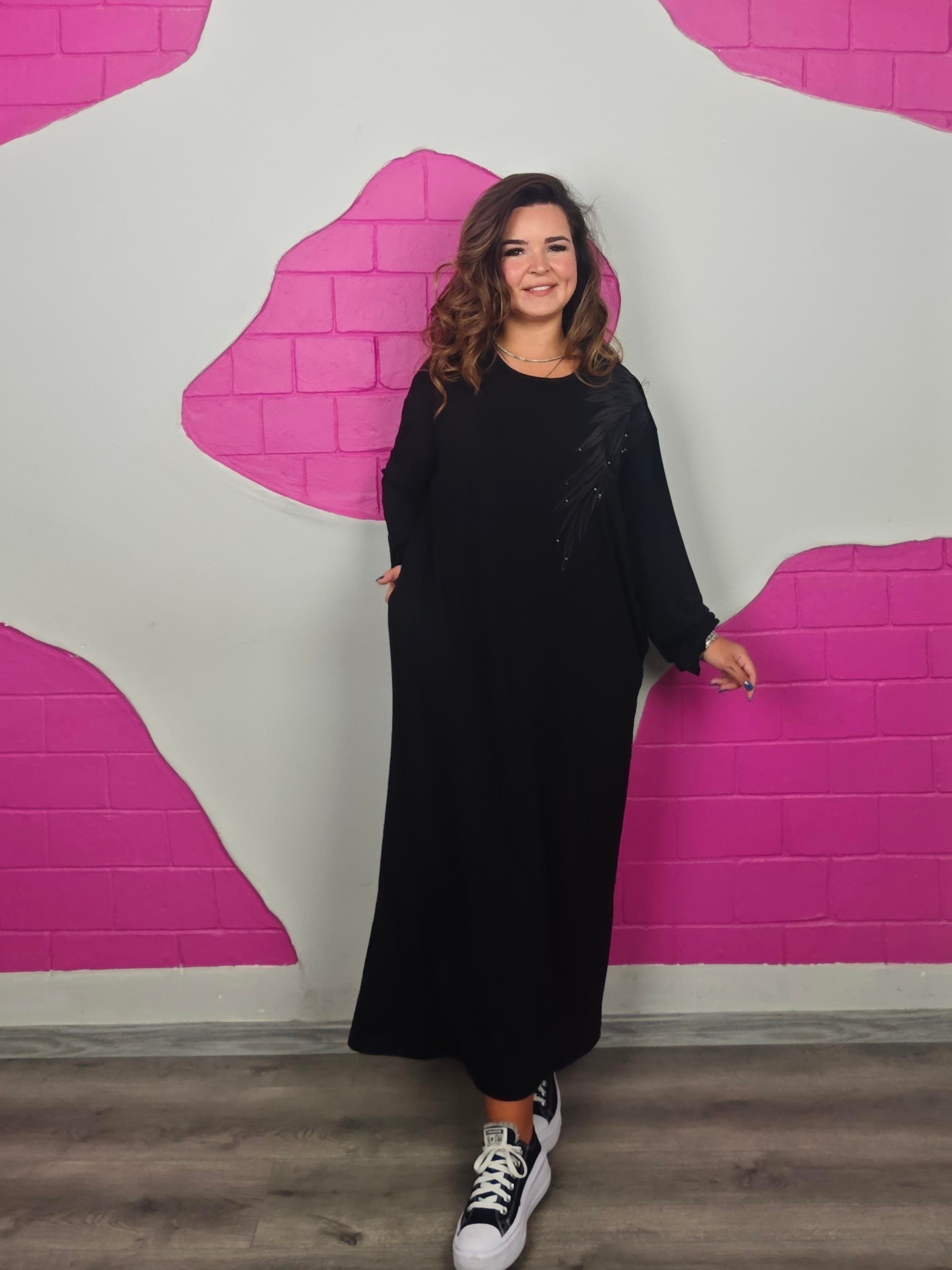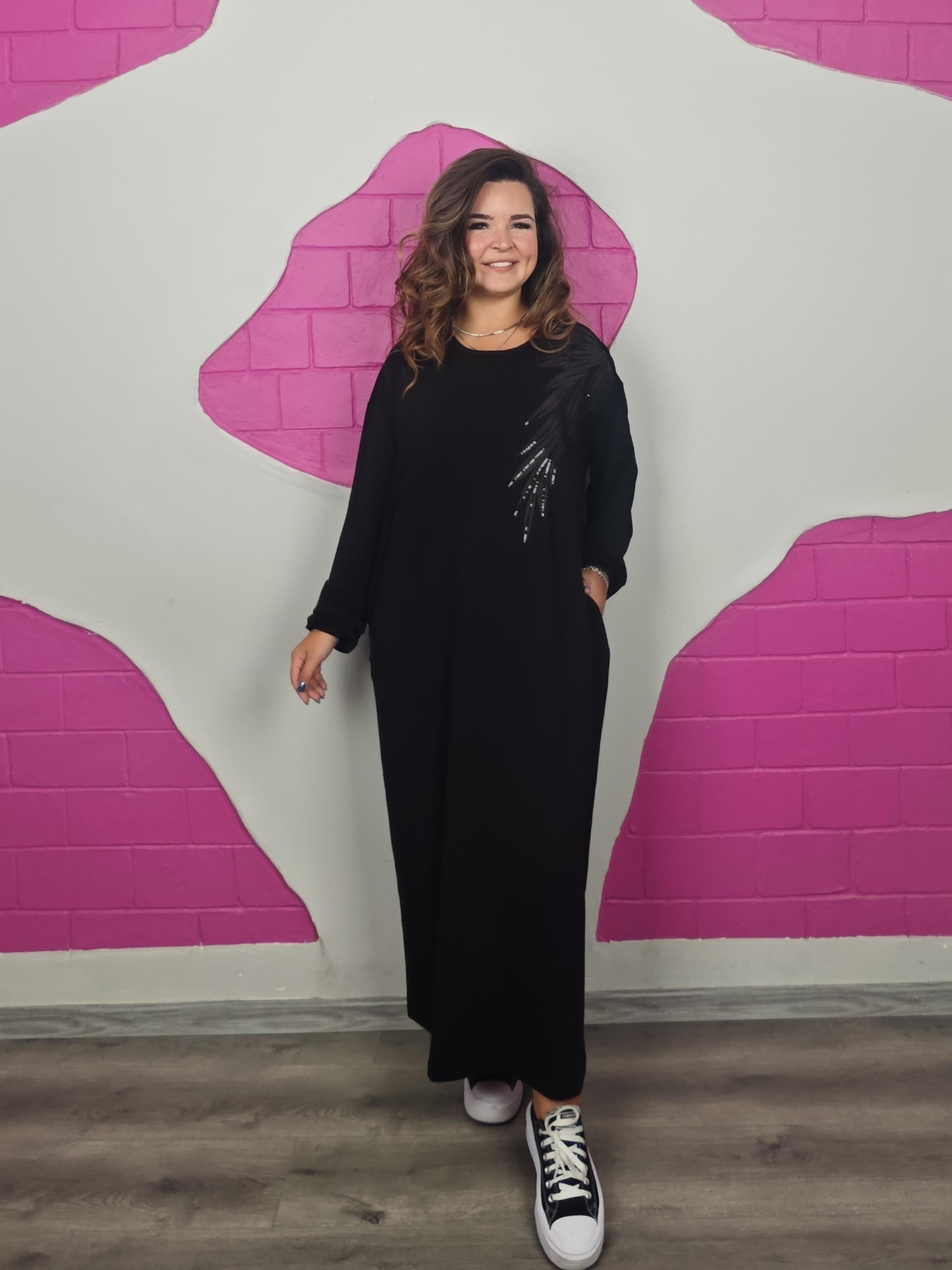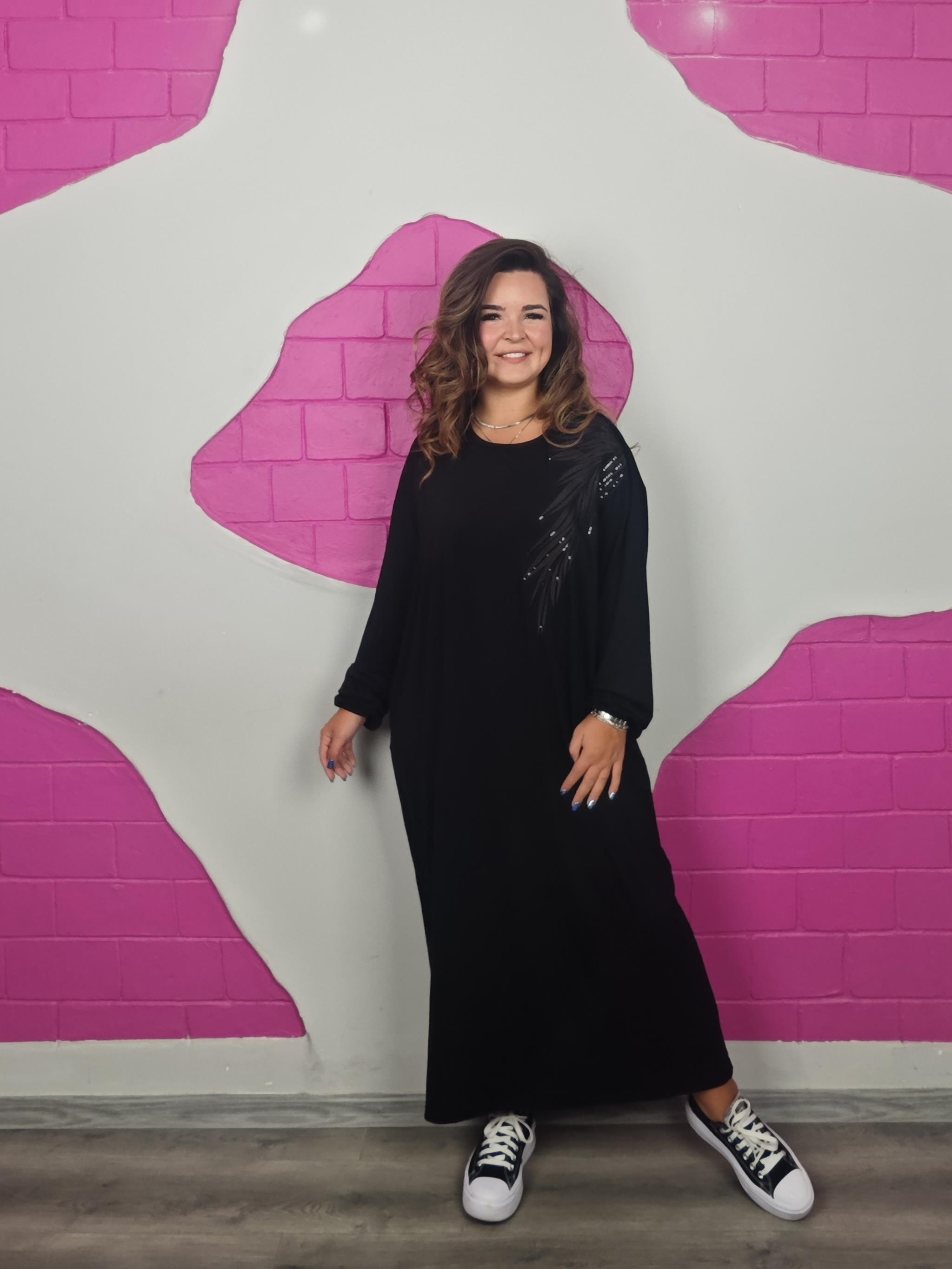 BÜYÜK BEDEN BATTAL SİYAH YAPRAKLI ELBİSE