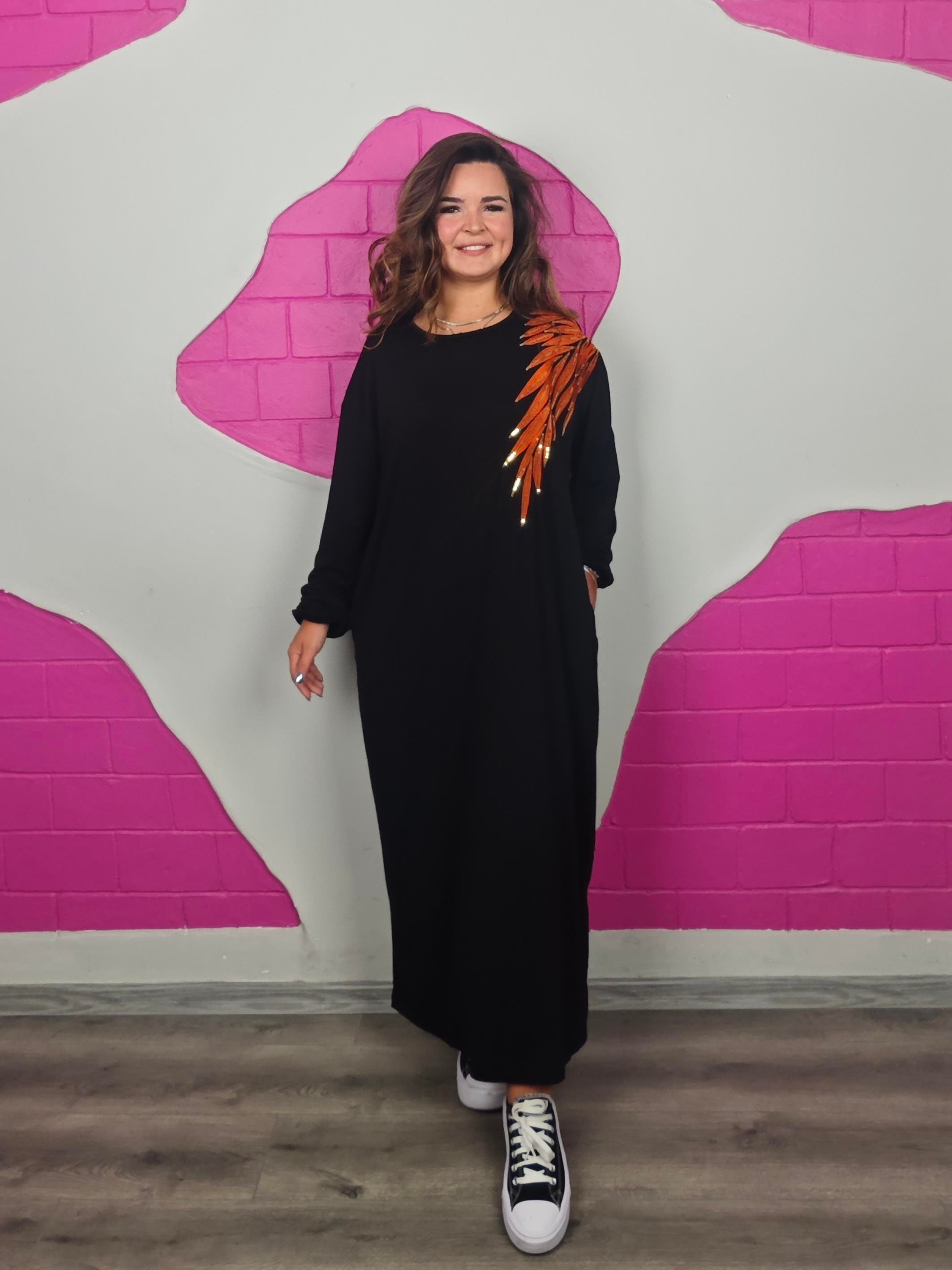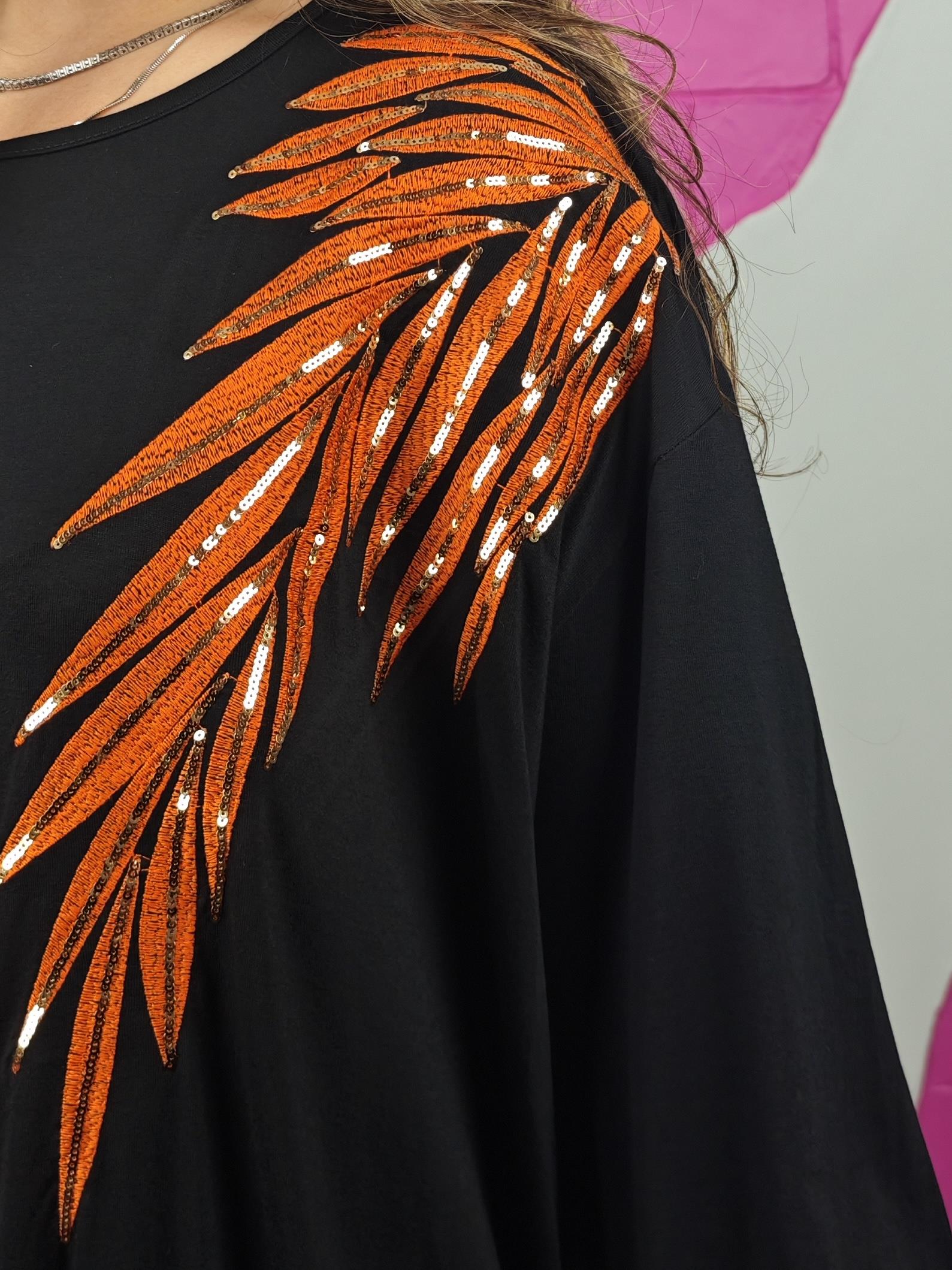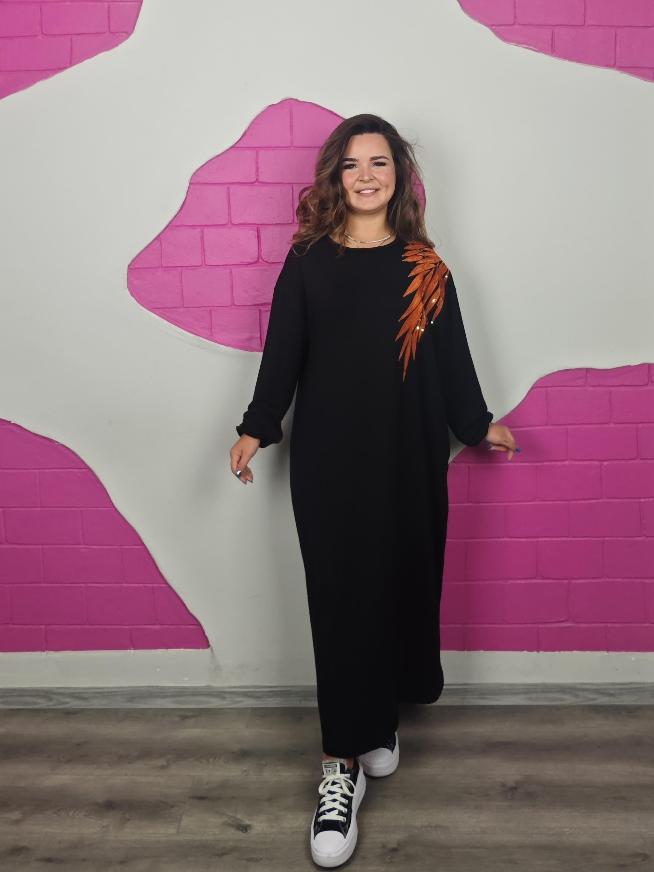BÜYÜK BEDEN BATTAL TURUNCU YAPRAKLI ELBİSE