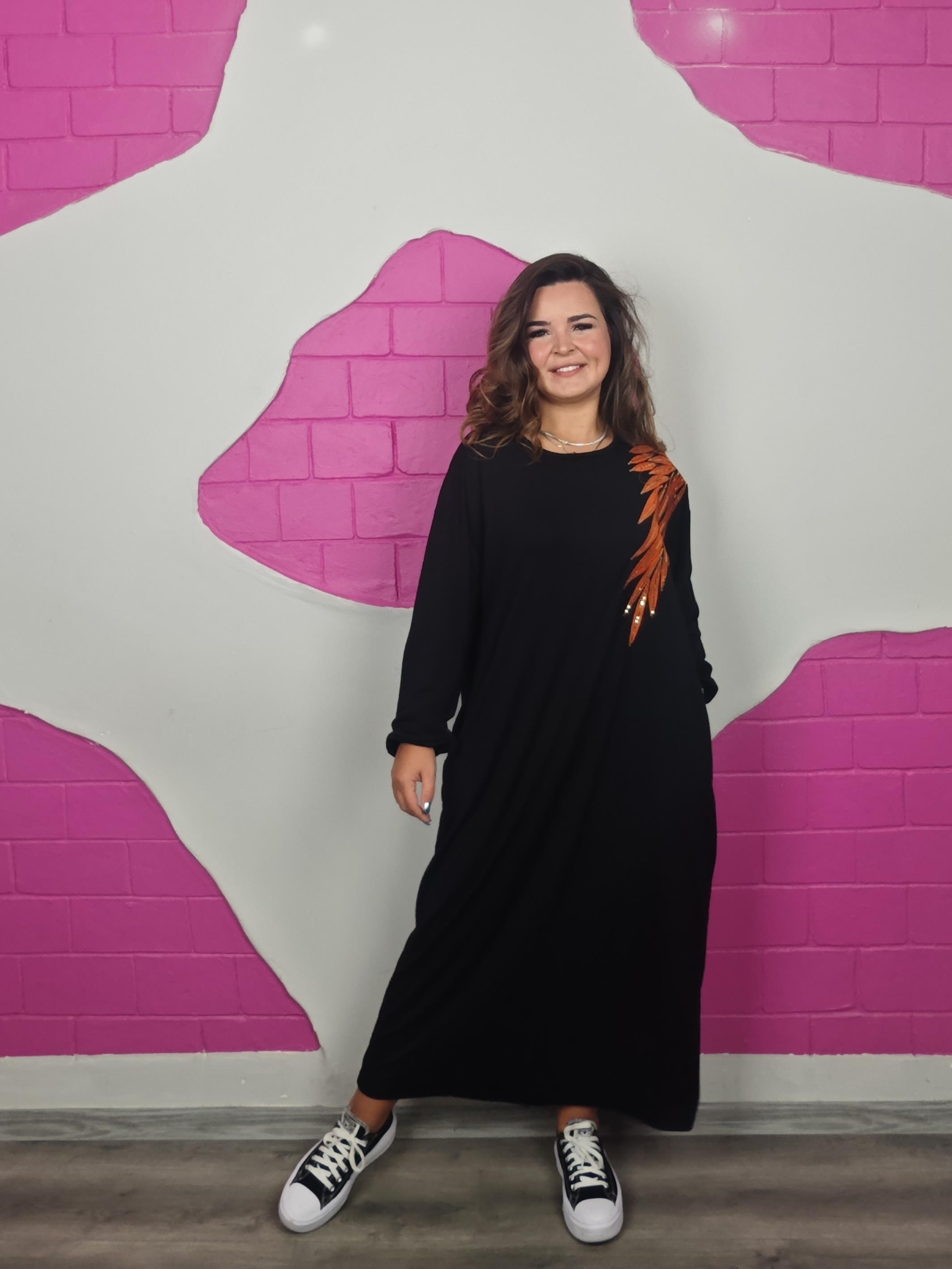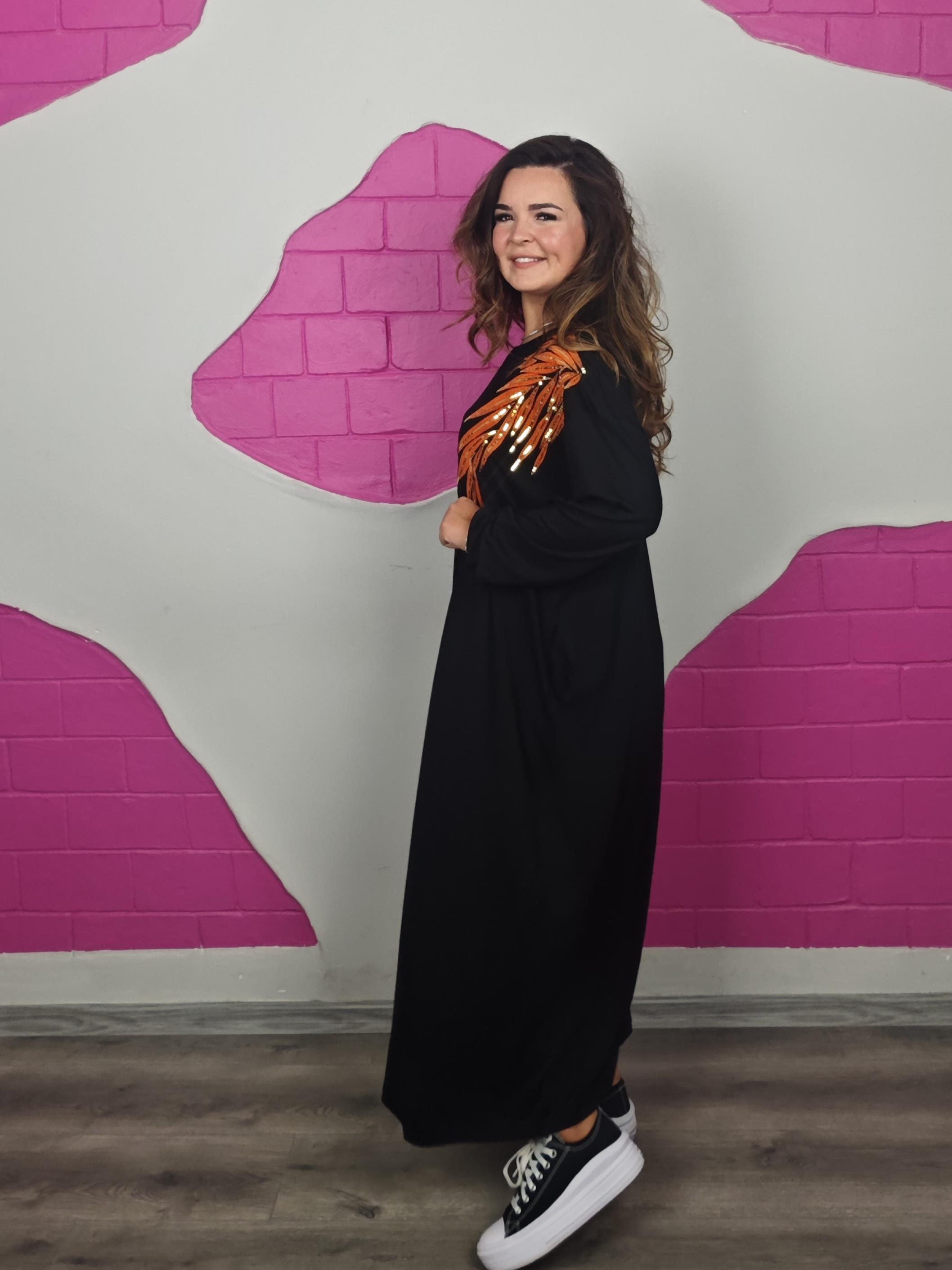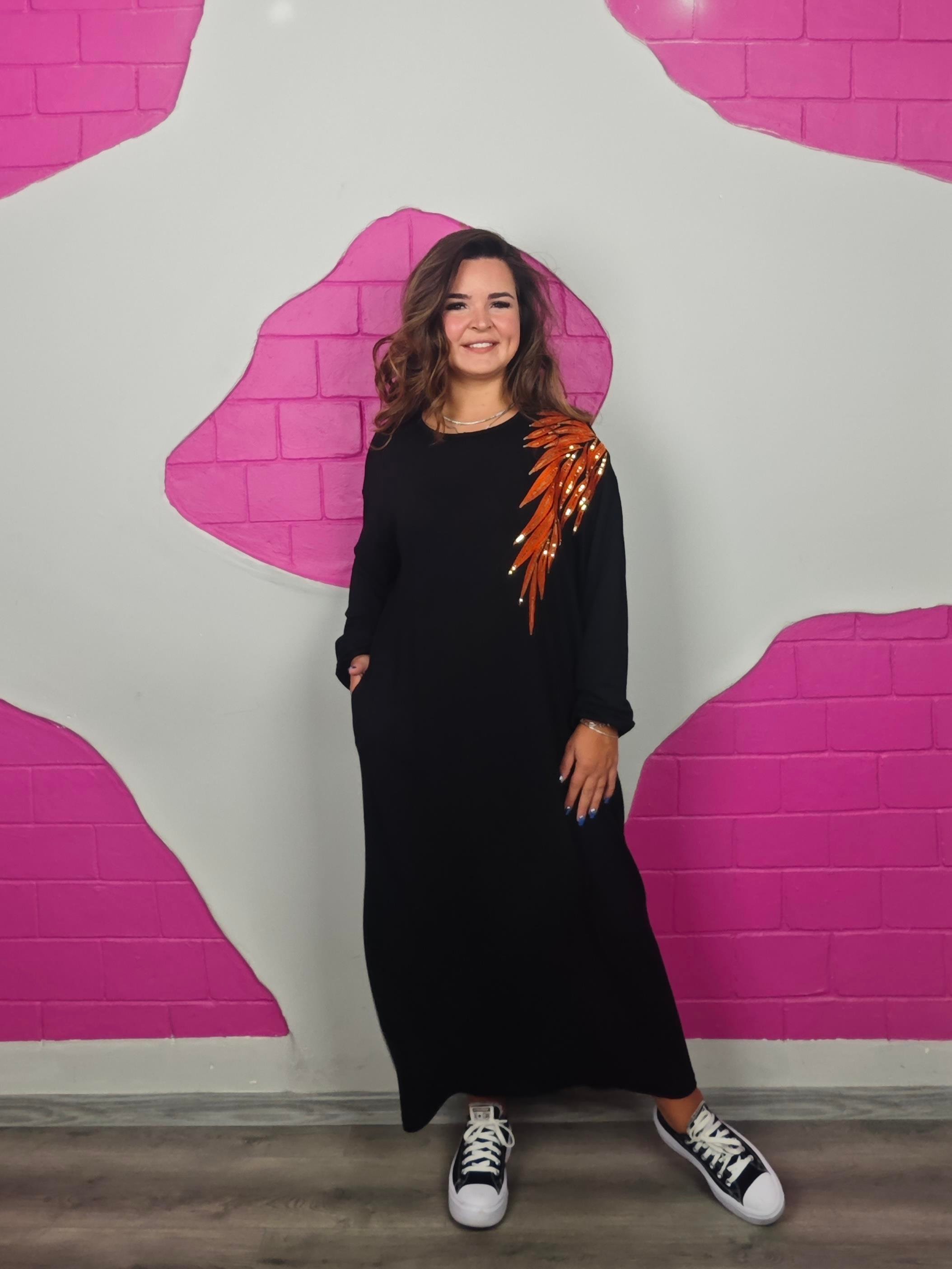 BÜYÜK BEDEN BATTAL TURUNCU YAPRAKLI ELBİSE