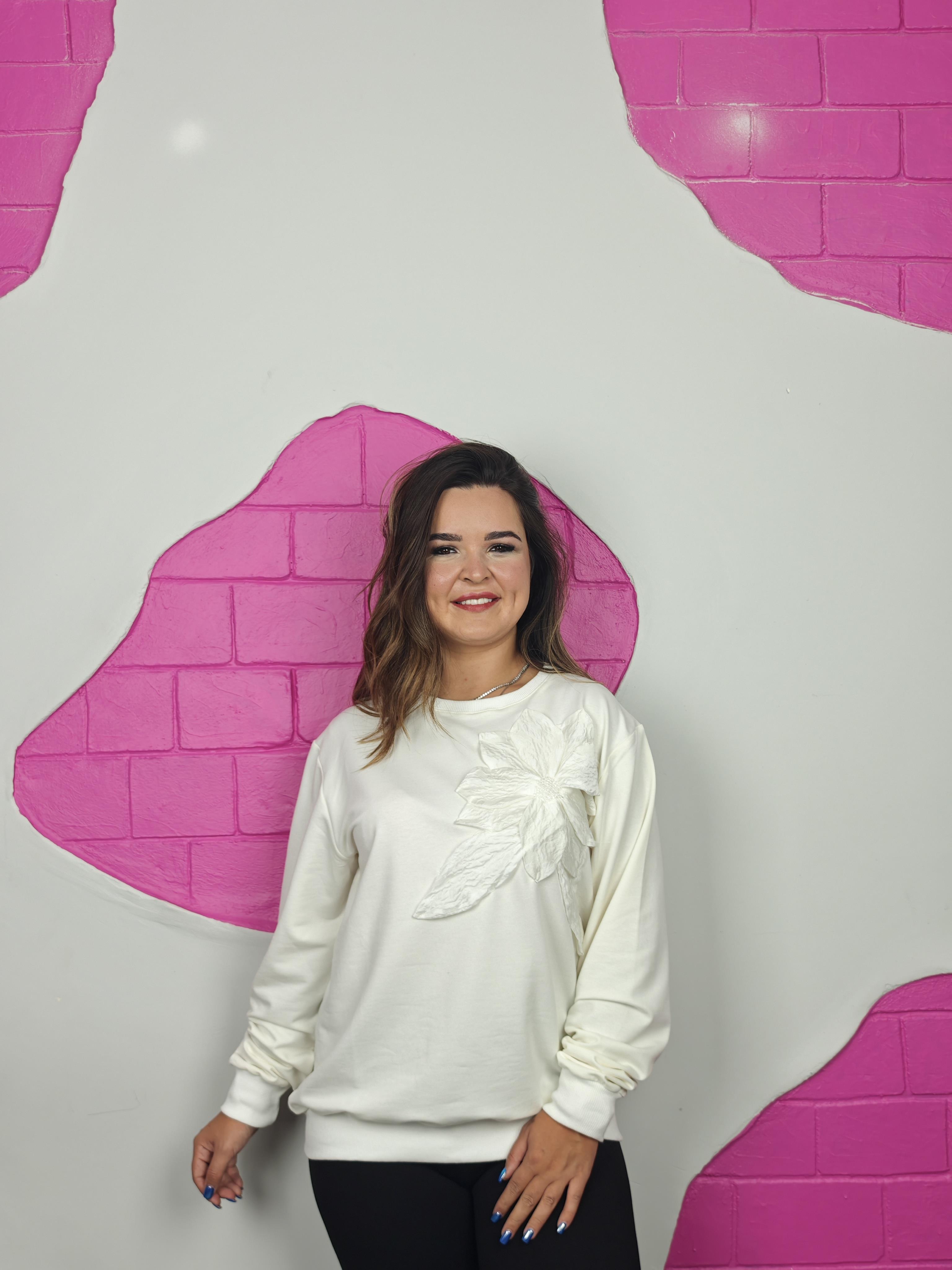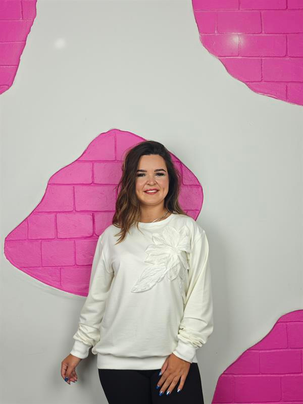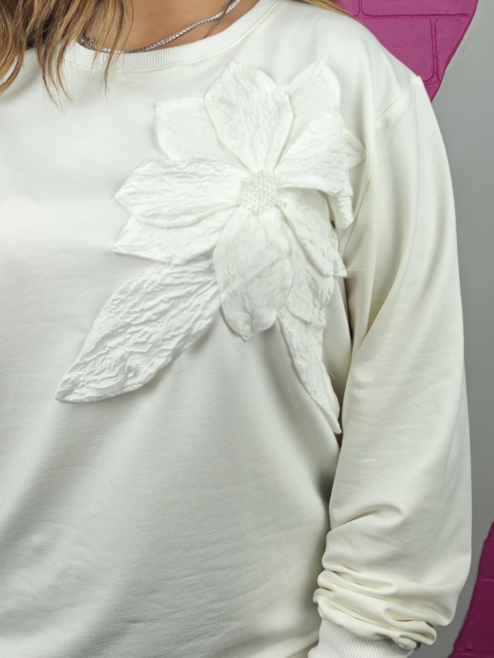 BÜYÜK BEDEN EKRU ÇİÇEK DETAYLI SWEATSHIRT