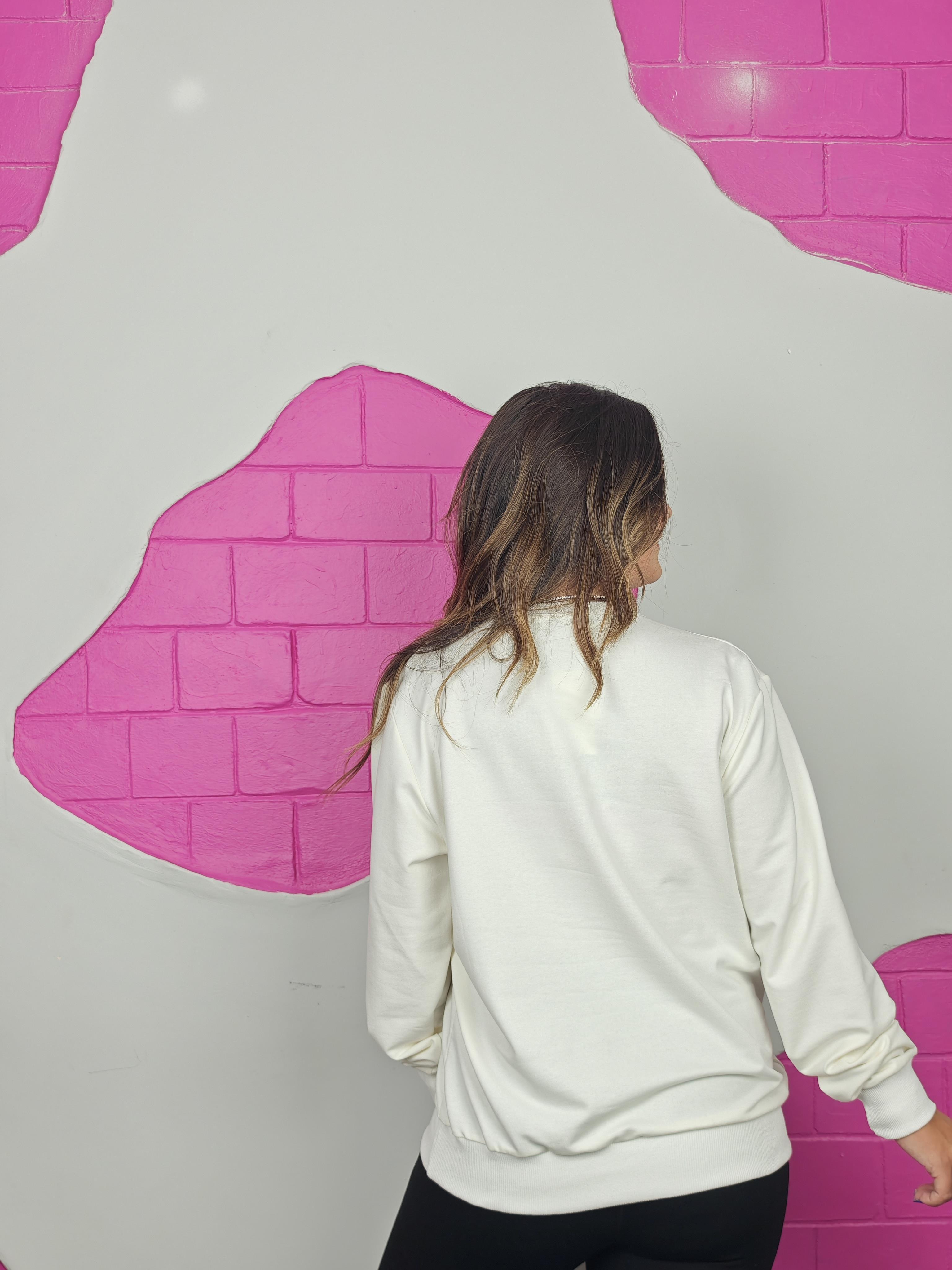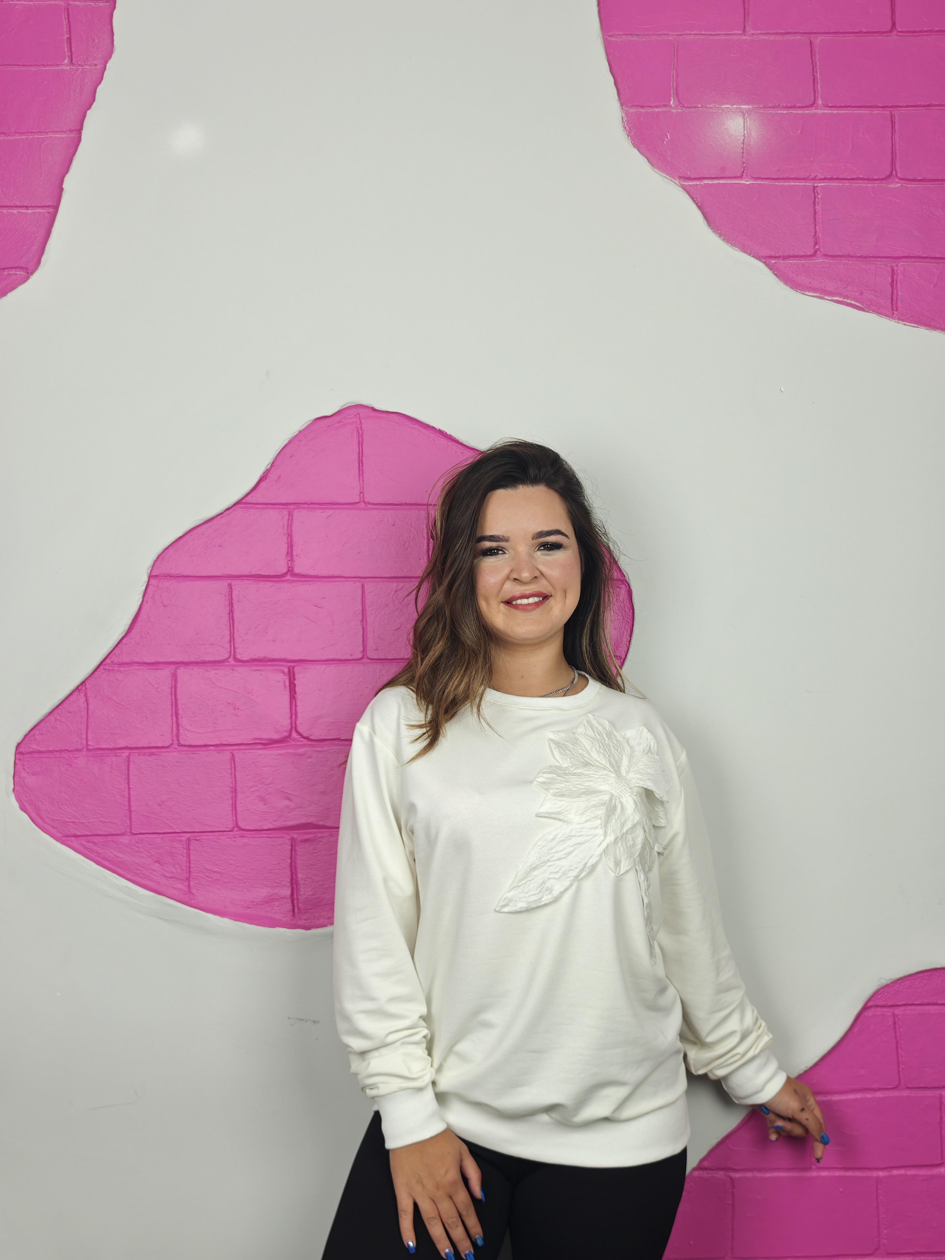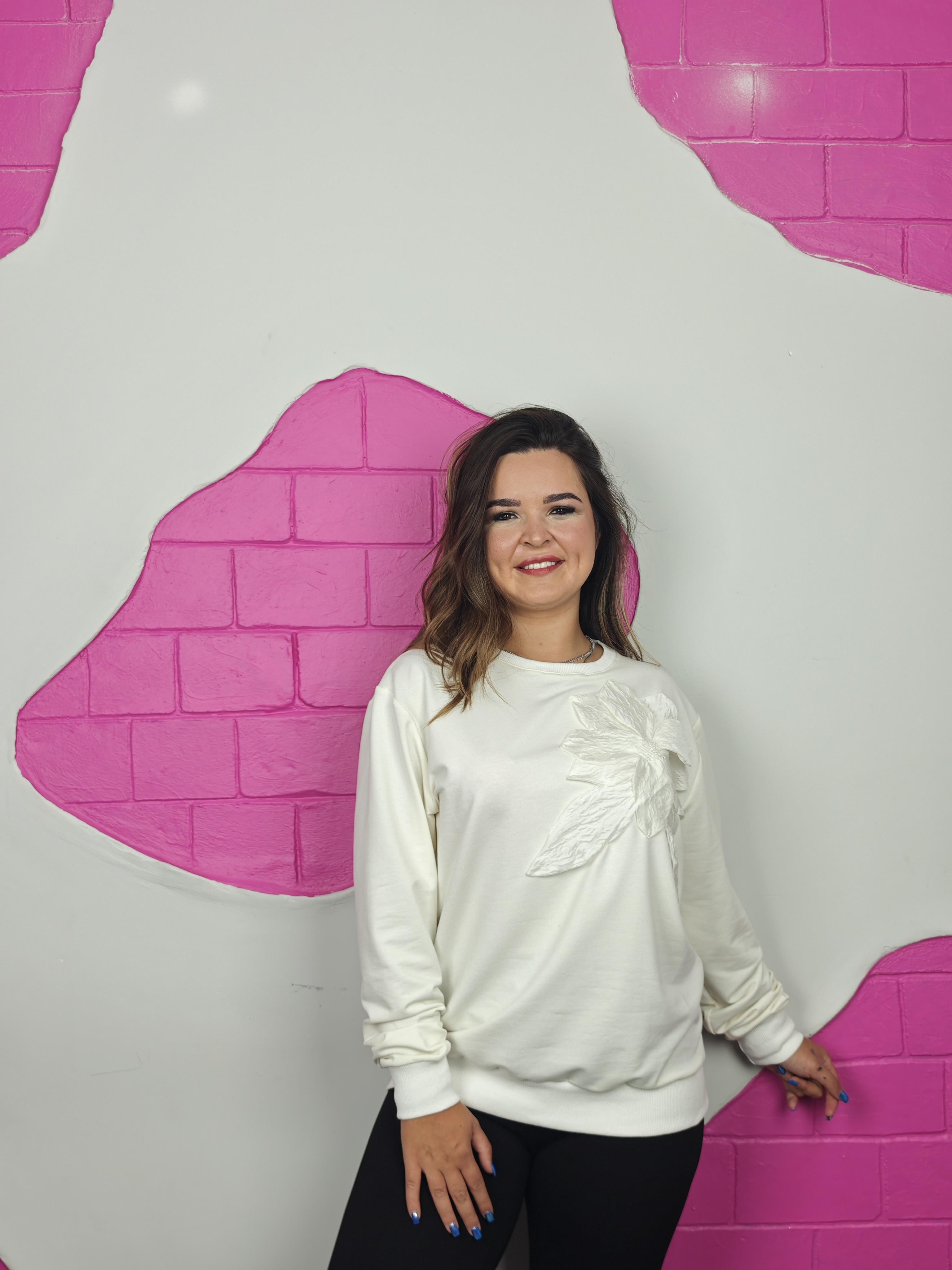 BÜYÜK BEDEN EKRU ÇİÇEK DETAYLI SWEATSHIRT