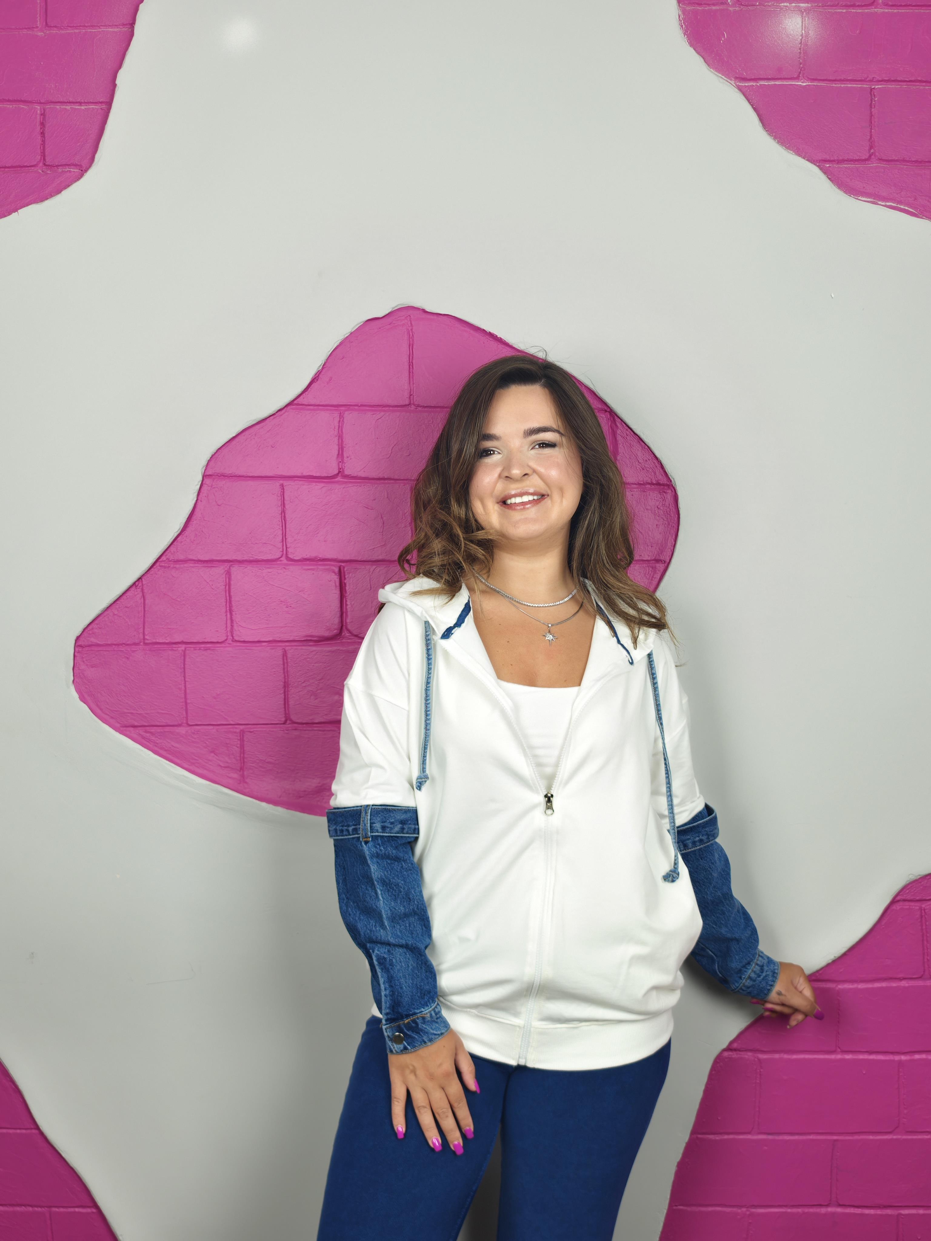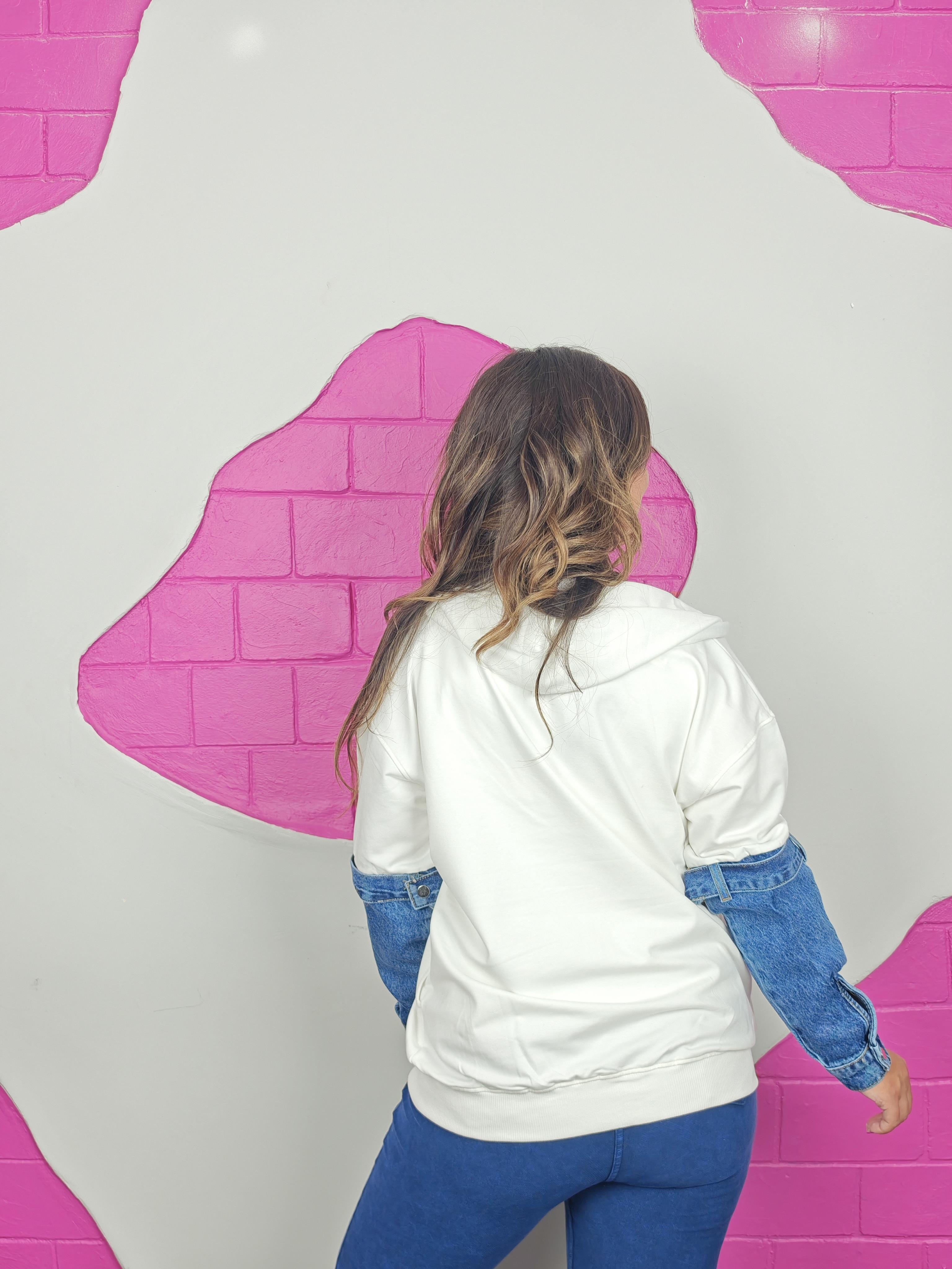 BÜYÜK BEDEN EKRU KOLU KOT SWEATSHIRT