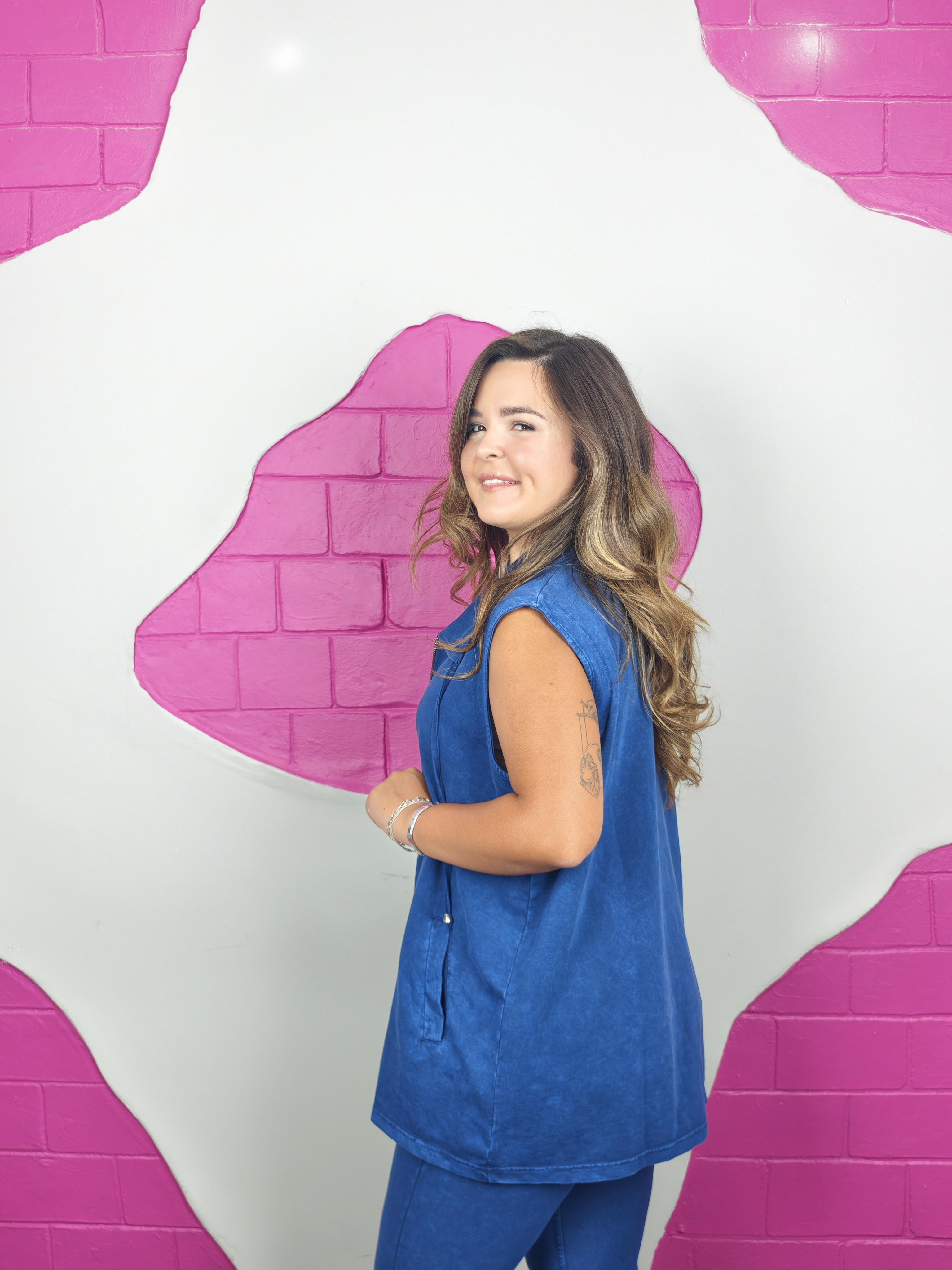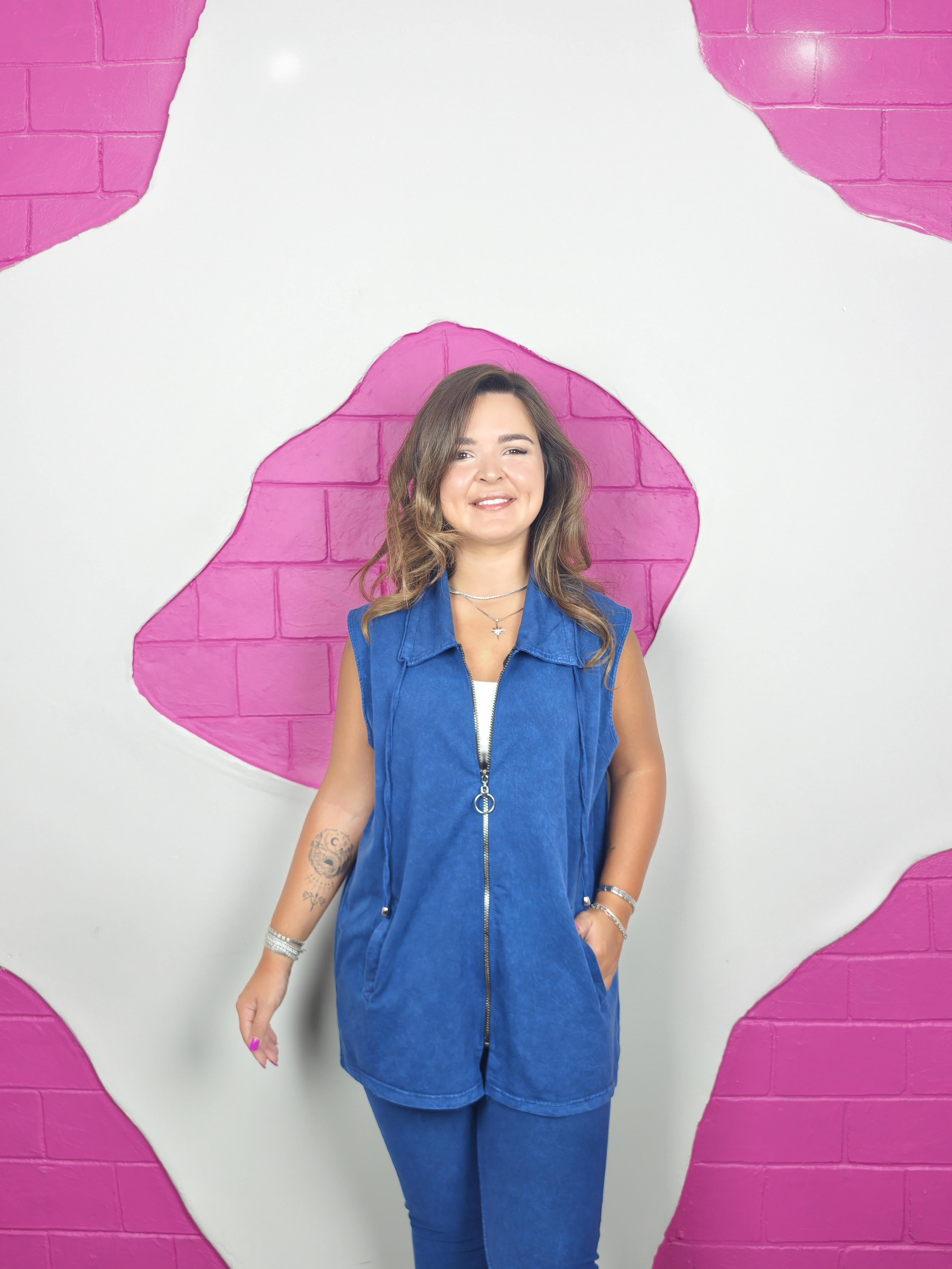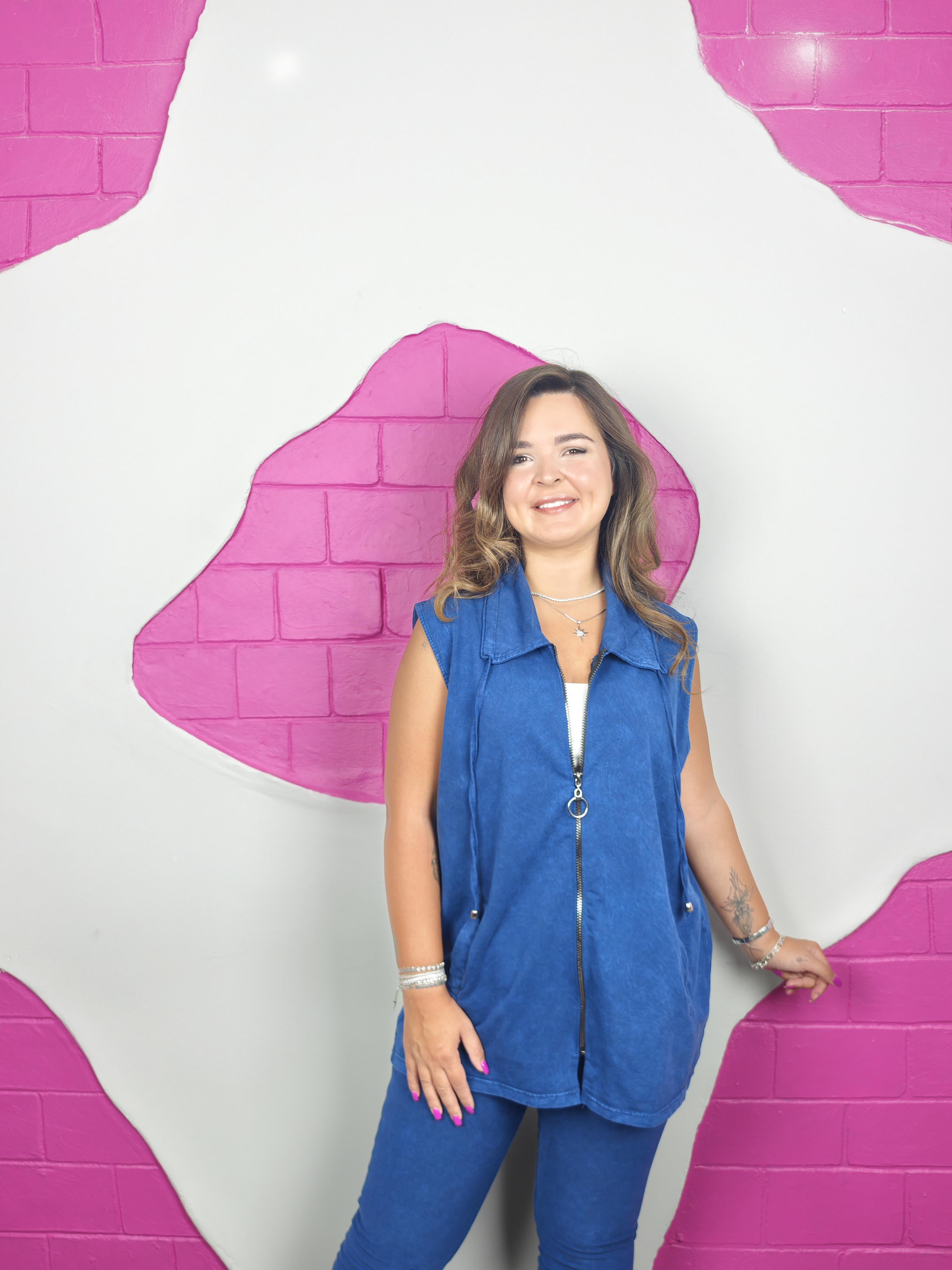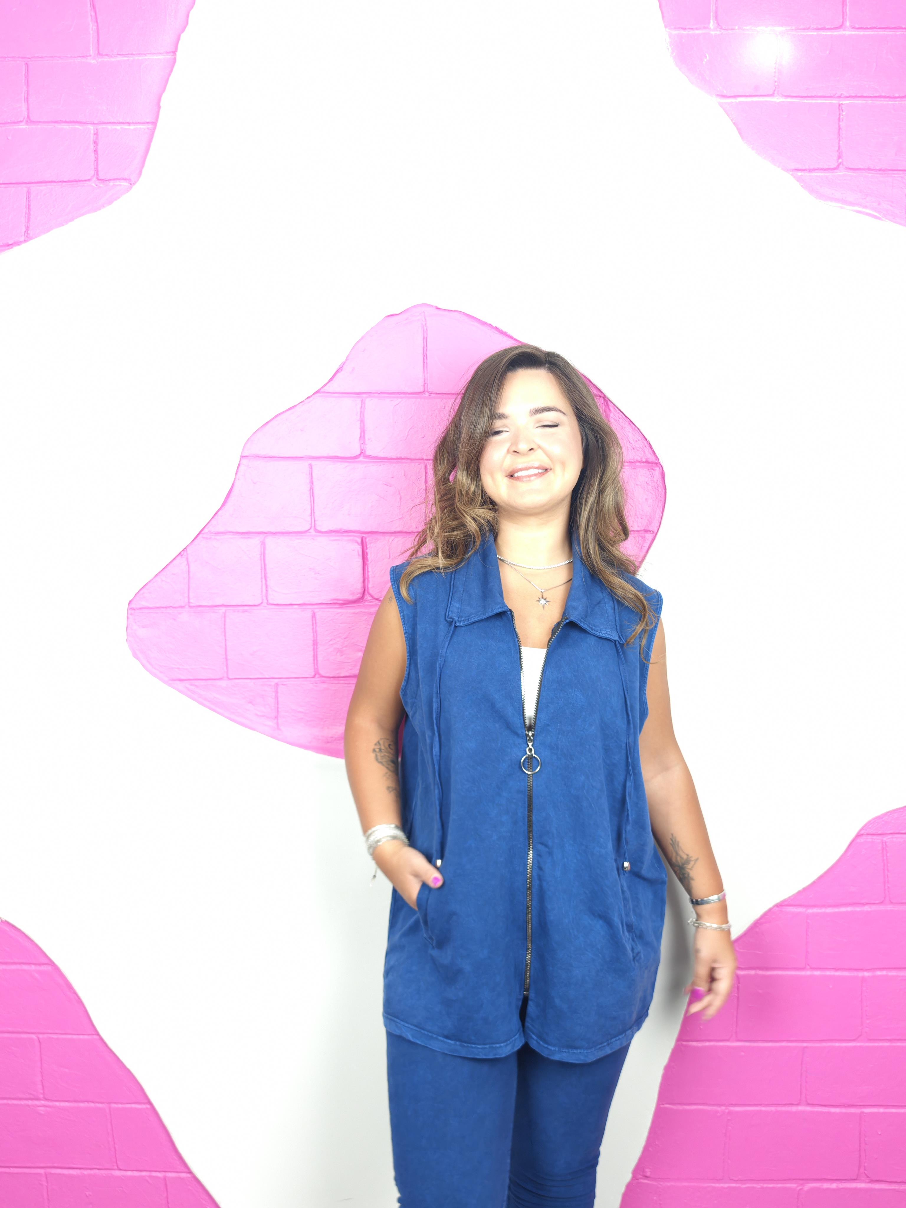 BÜYÜK BEDEN MAVİ YIKAMALI YELEK