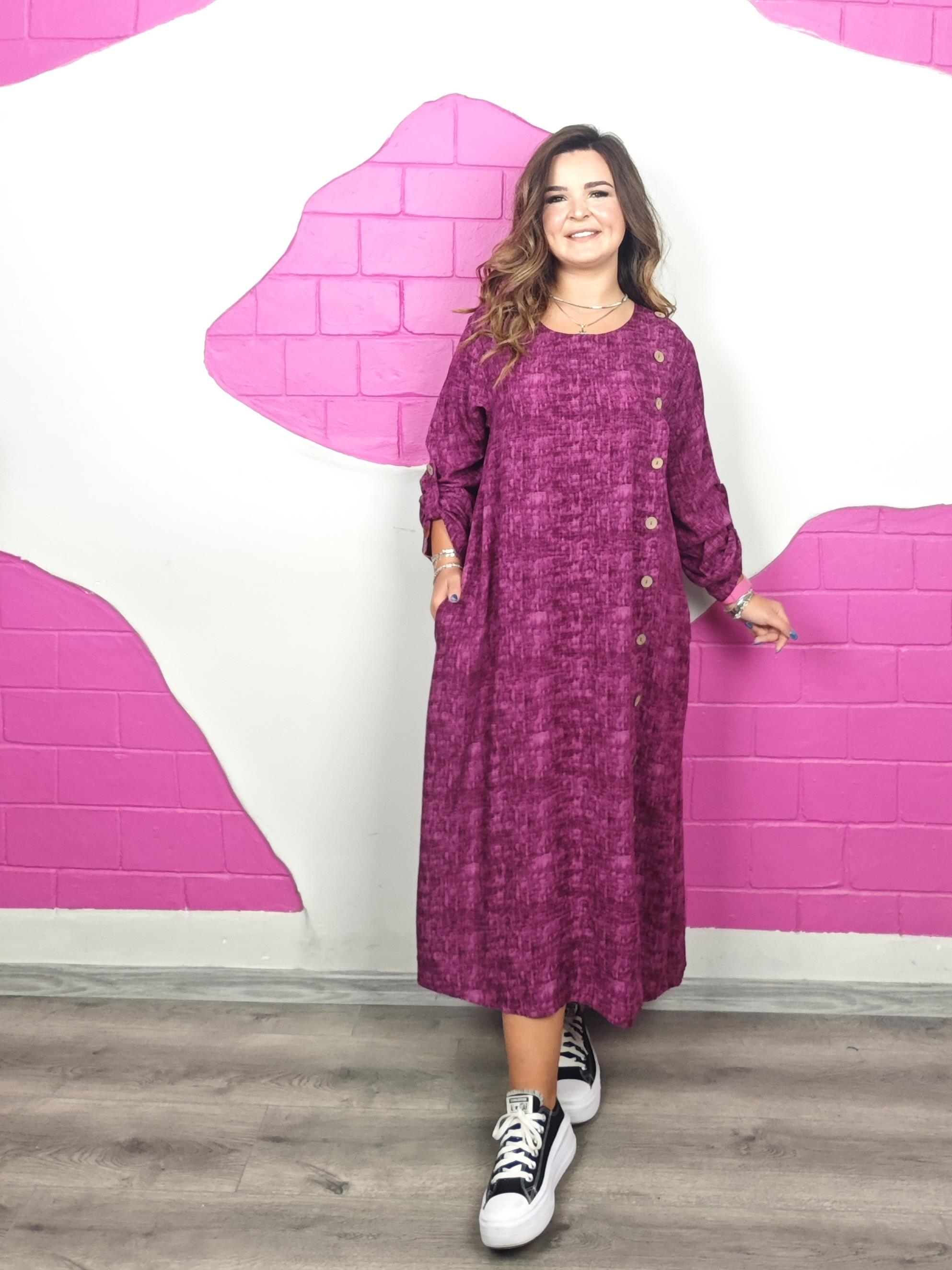 BÜYÜK BEDEN MÜRDÜM DÜĞMELİ VİSKON ELBİSE ÖN SİPARİŞE AÇIK 24 EYLÜL KARGO
