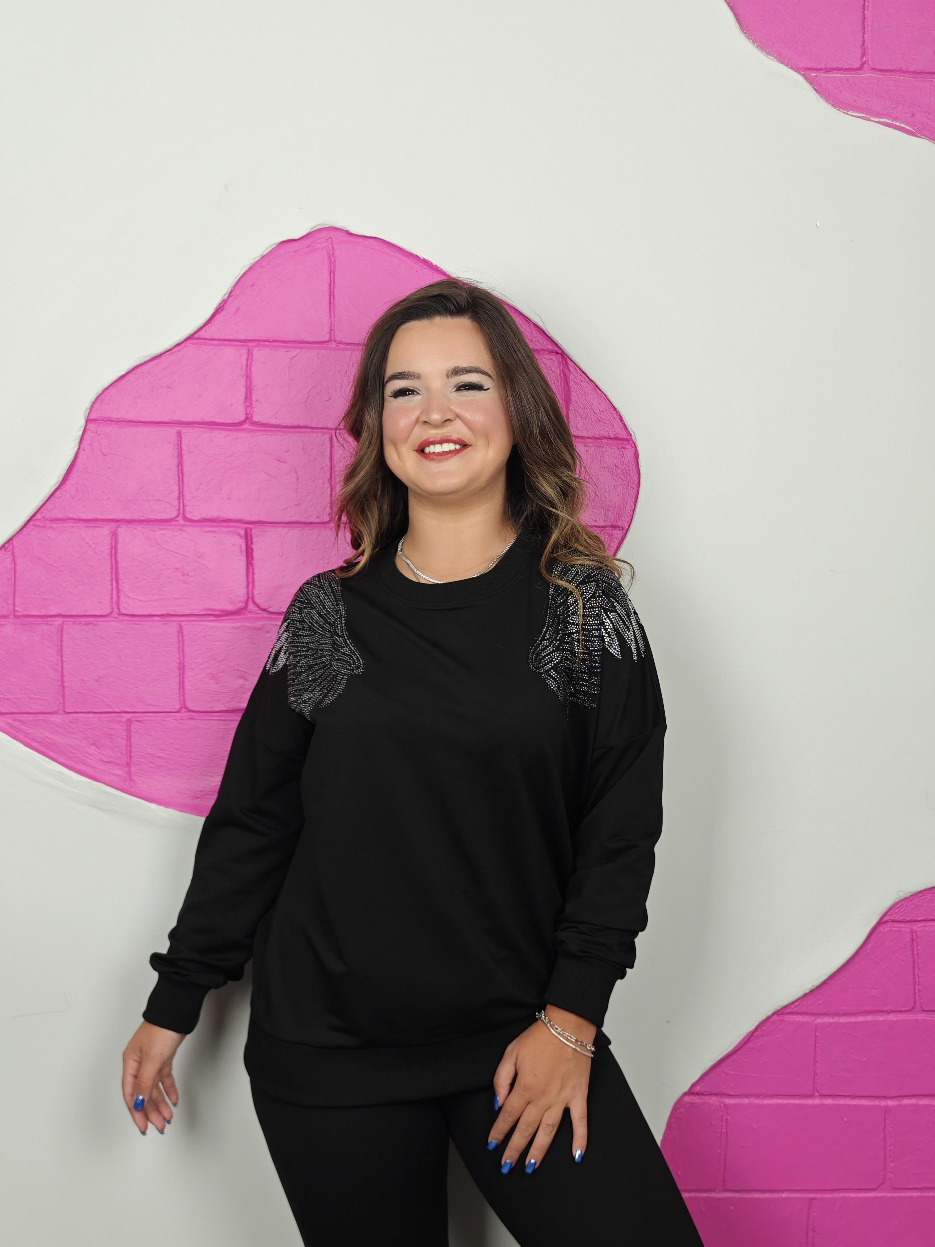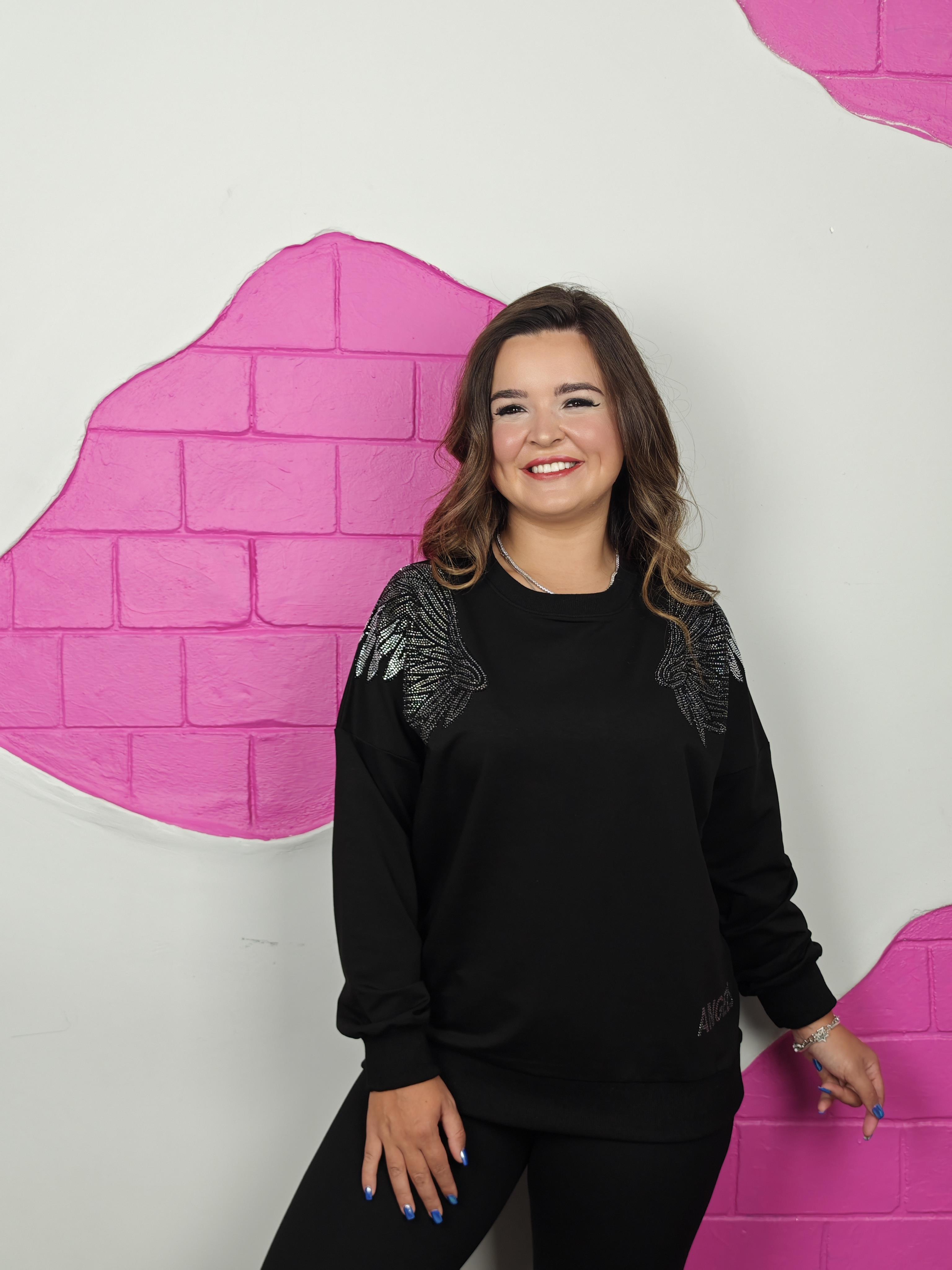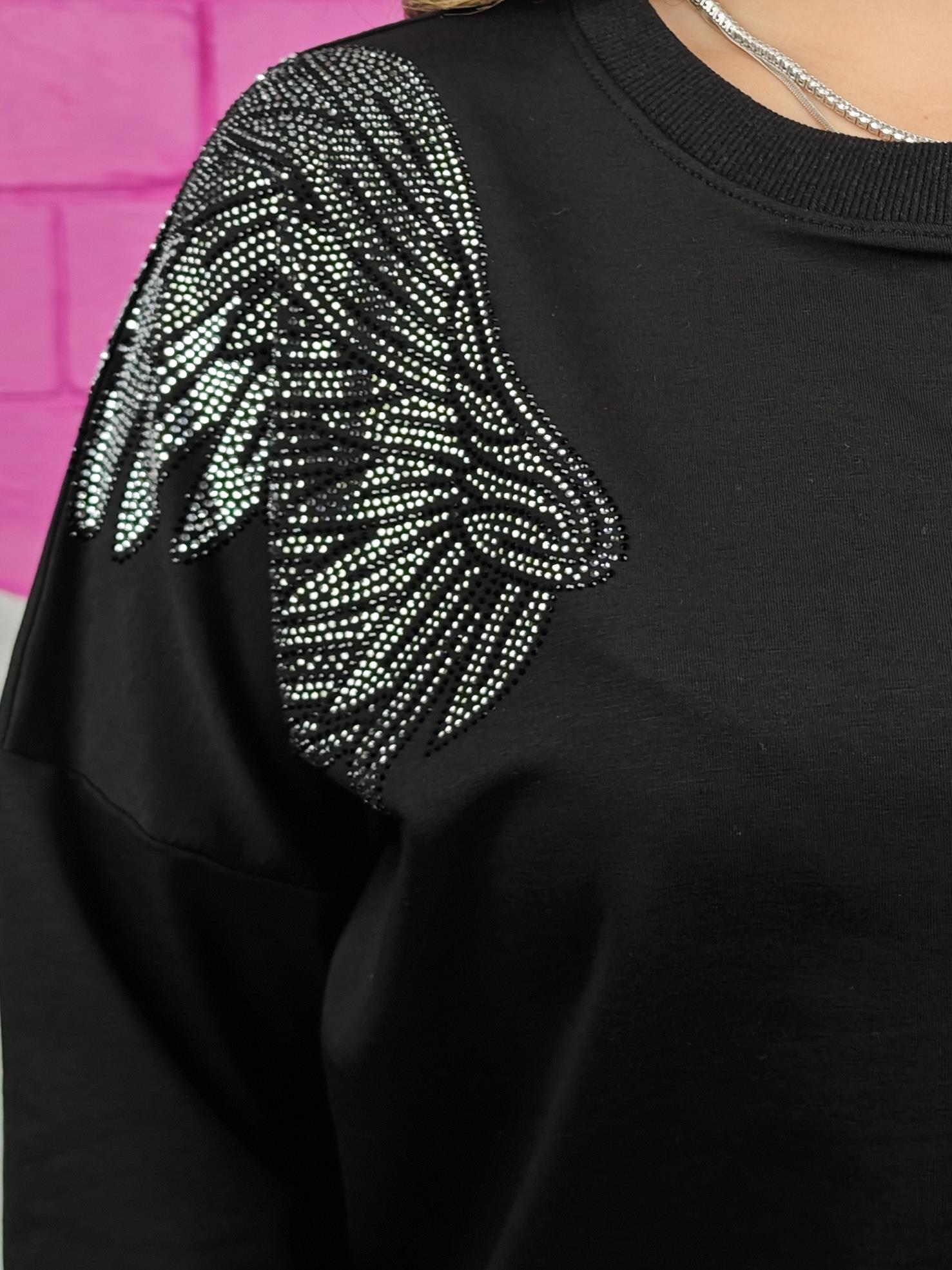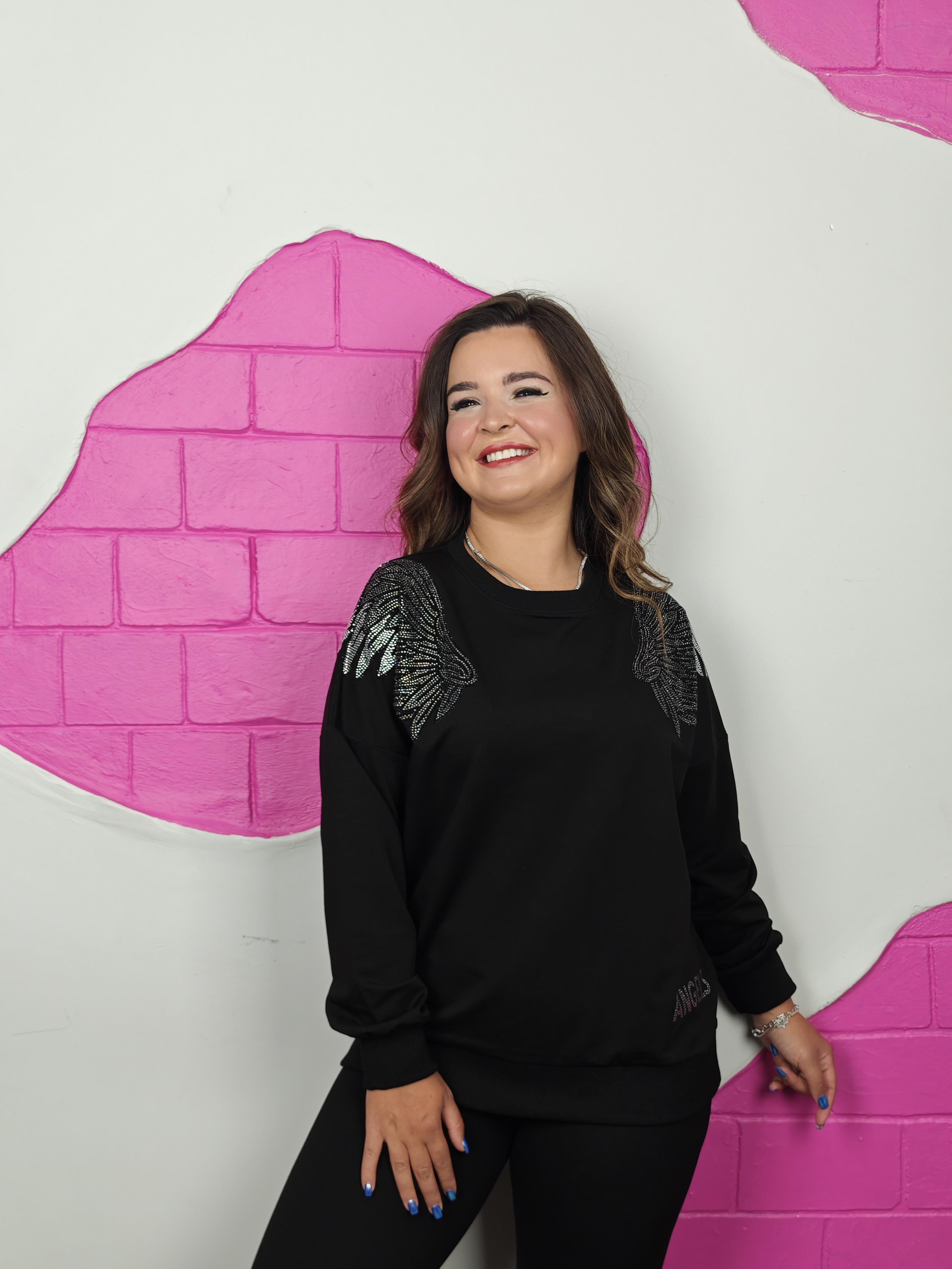 BÜYÜK BEDEN SİYAH MELEK KANADI SWEATSHIRT