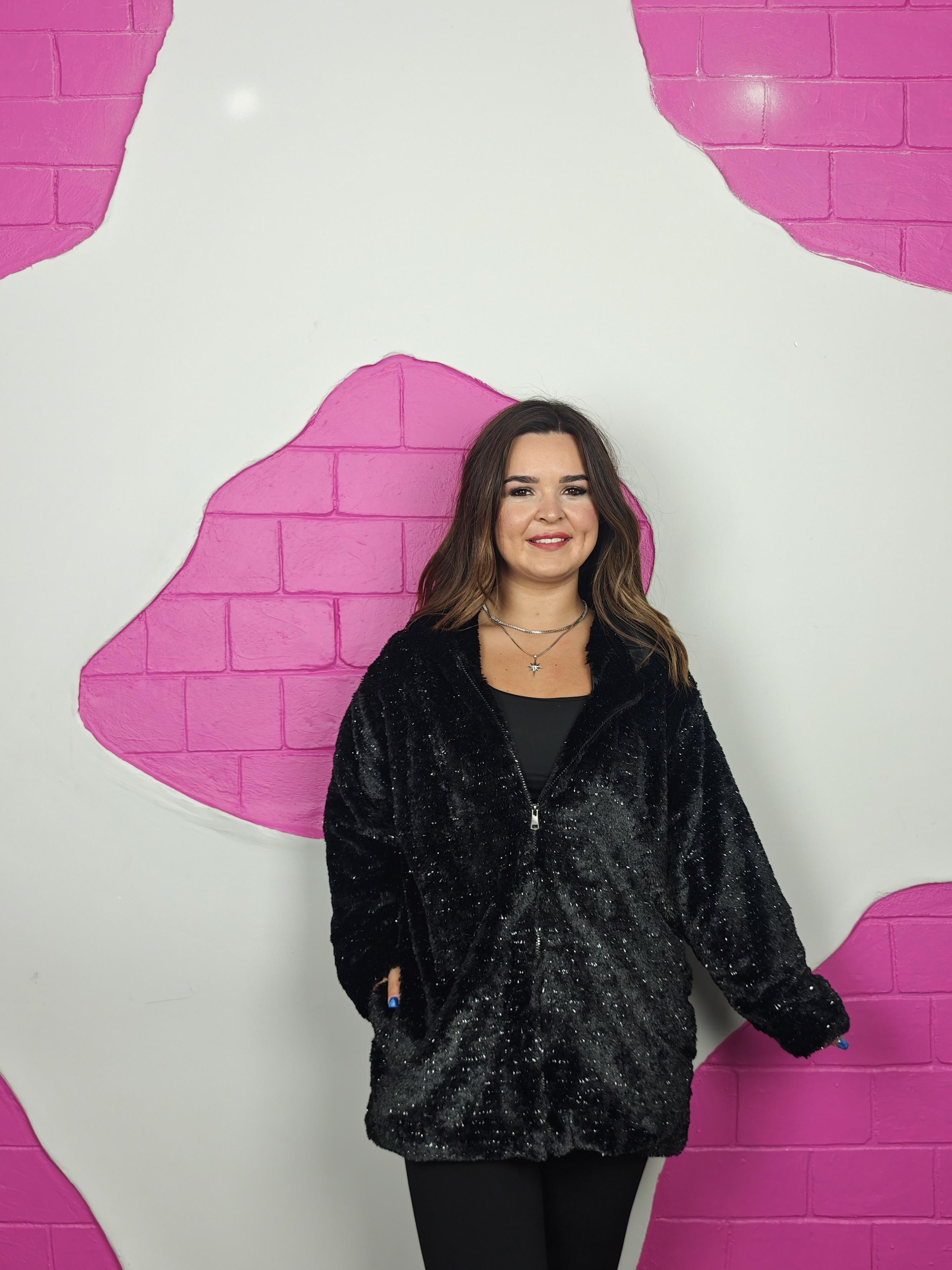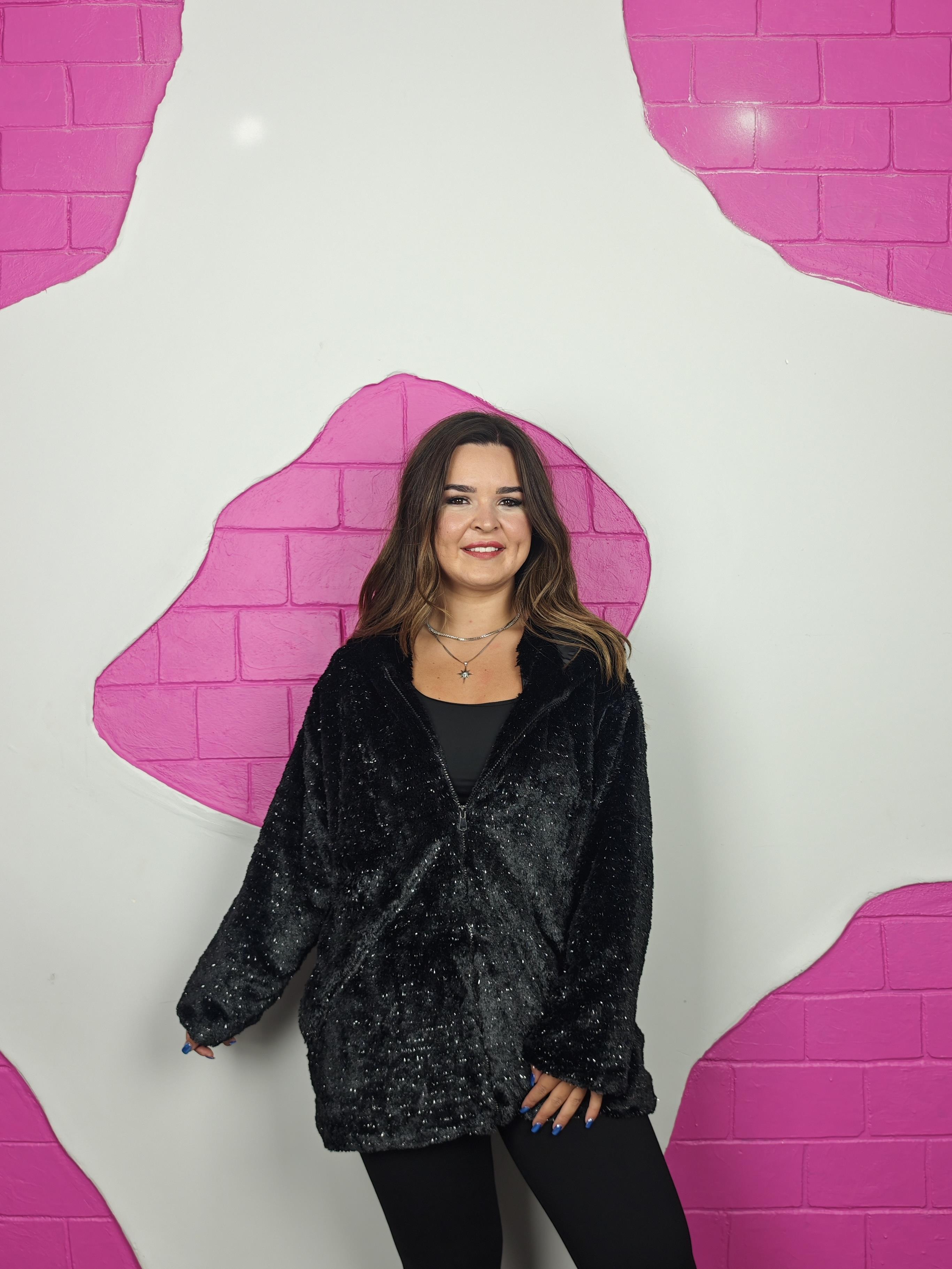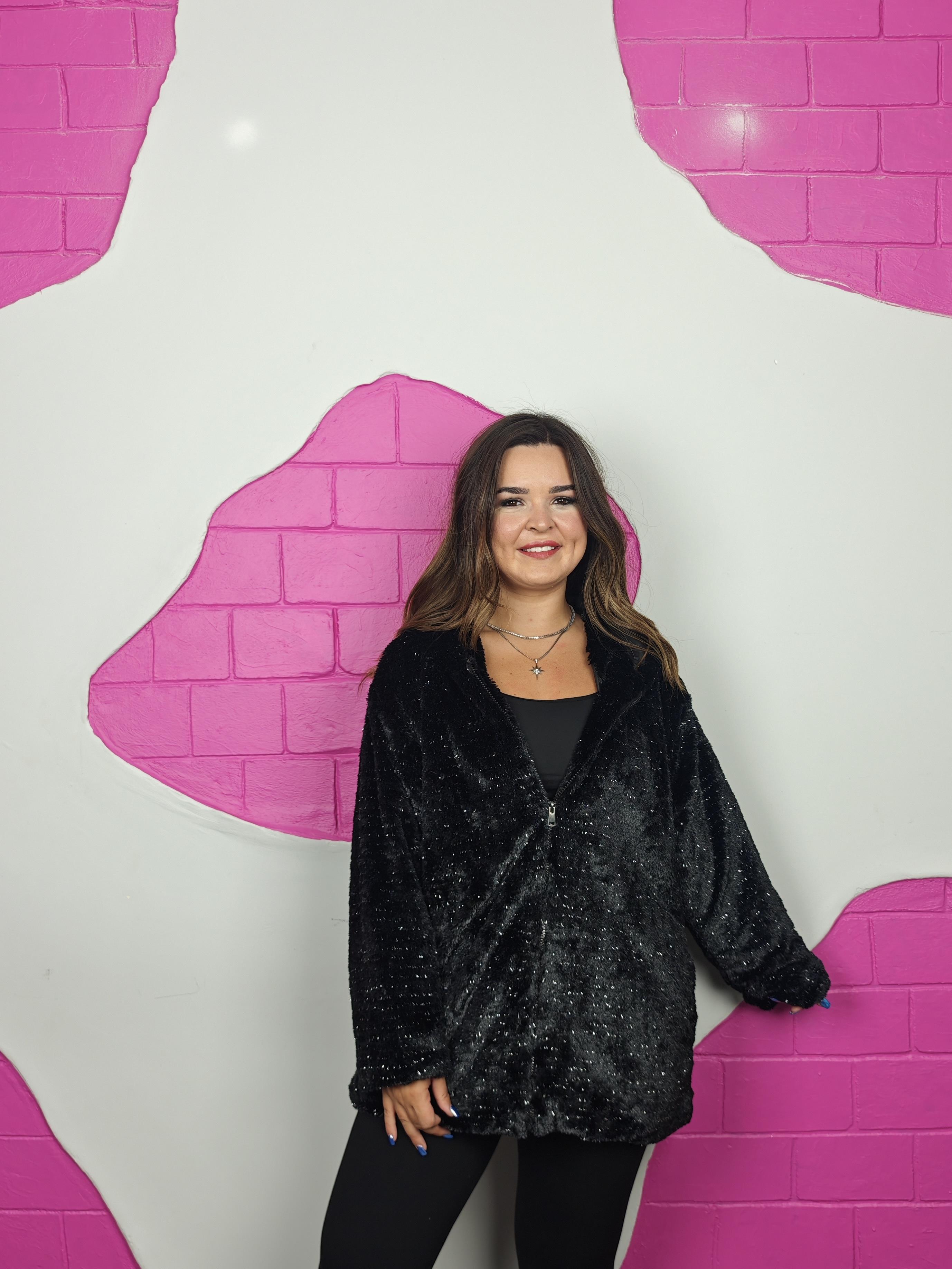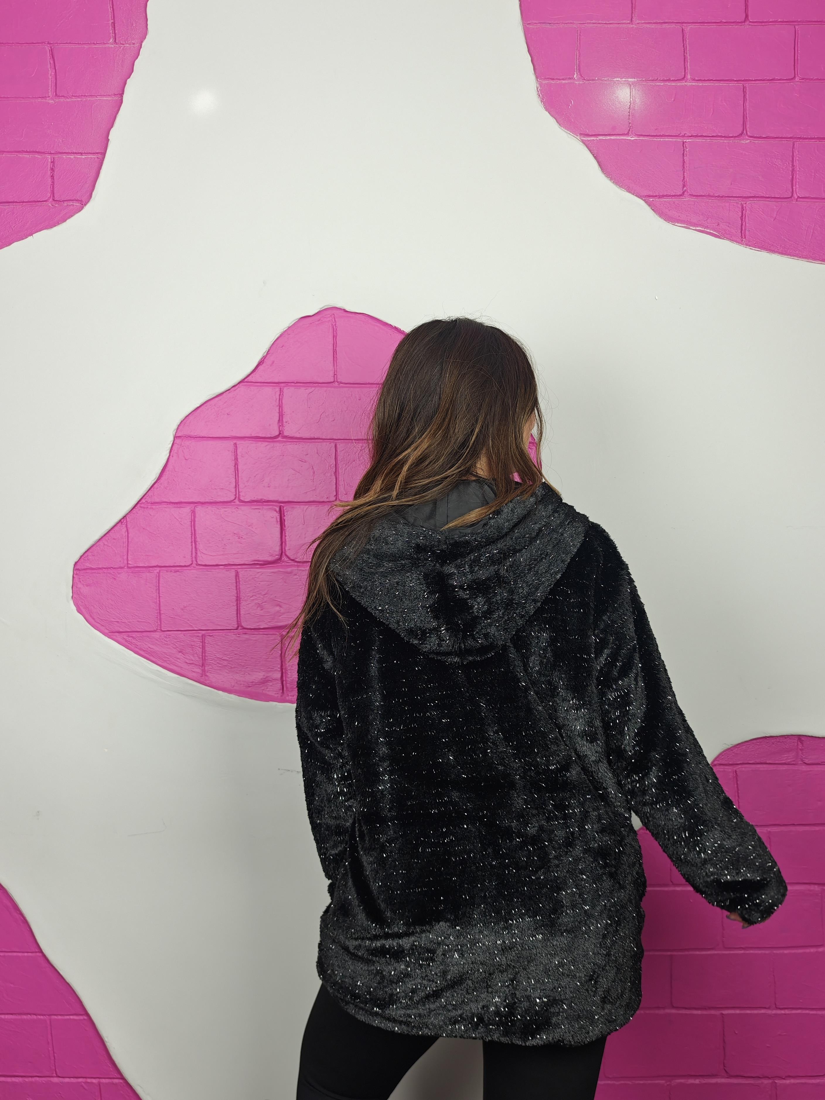 BÜYÜK BEDEN SİYAH SİMLİ PELUŞ KÜRK