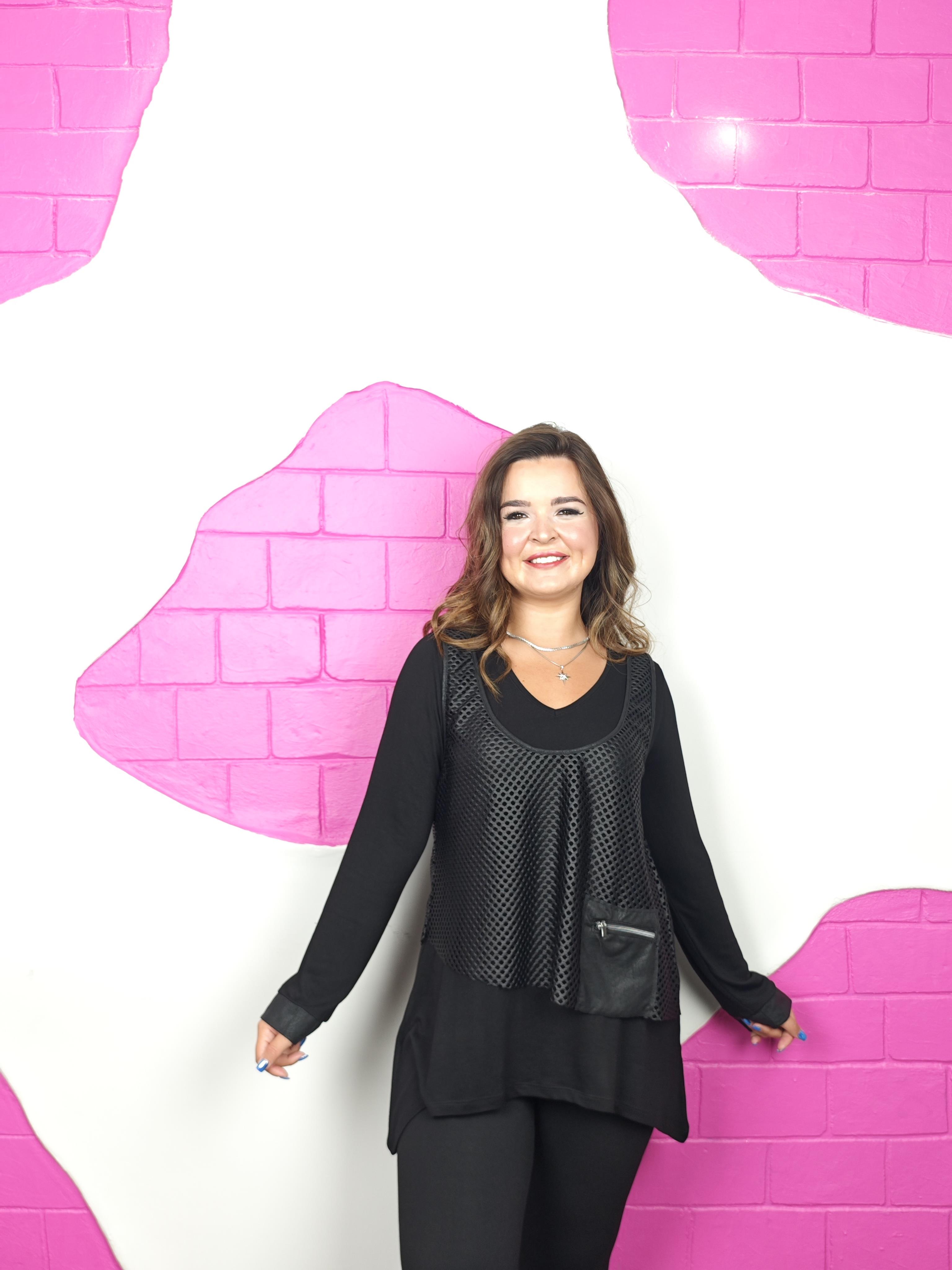 BÜYÜK BEDEN SİYAH YELEKLİ BLUZ