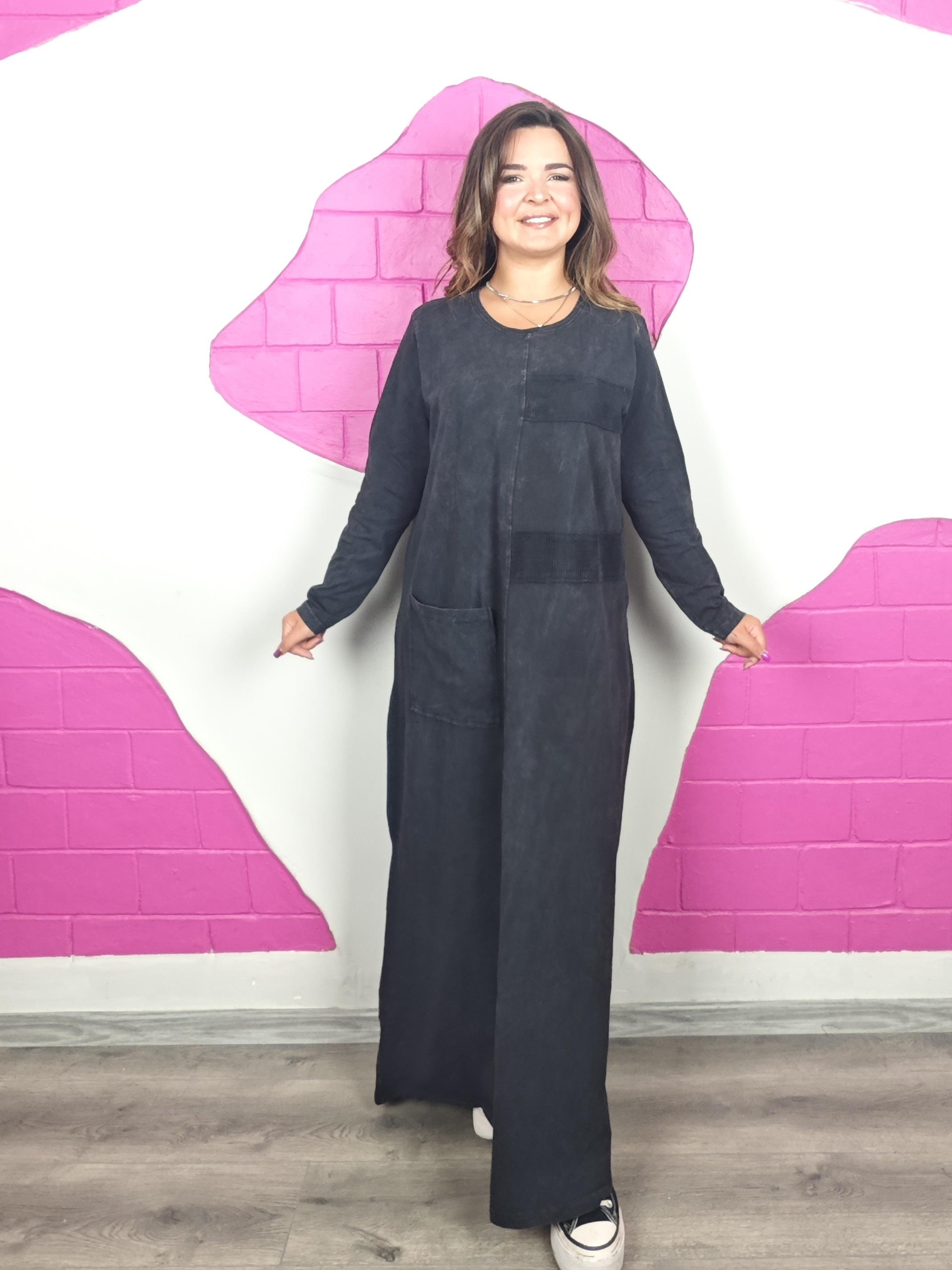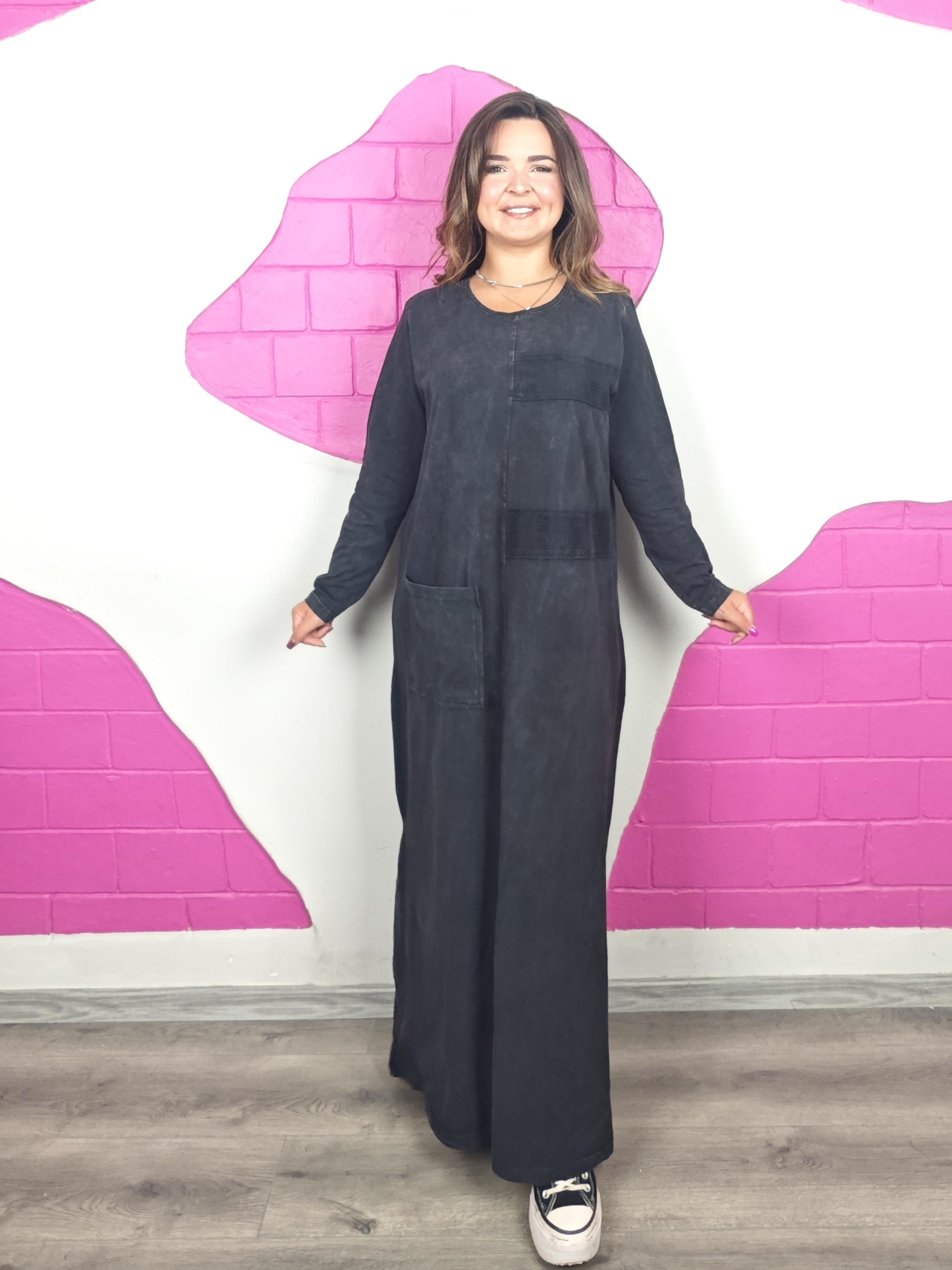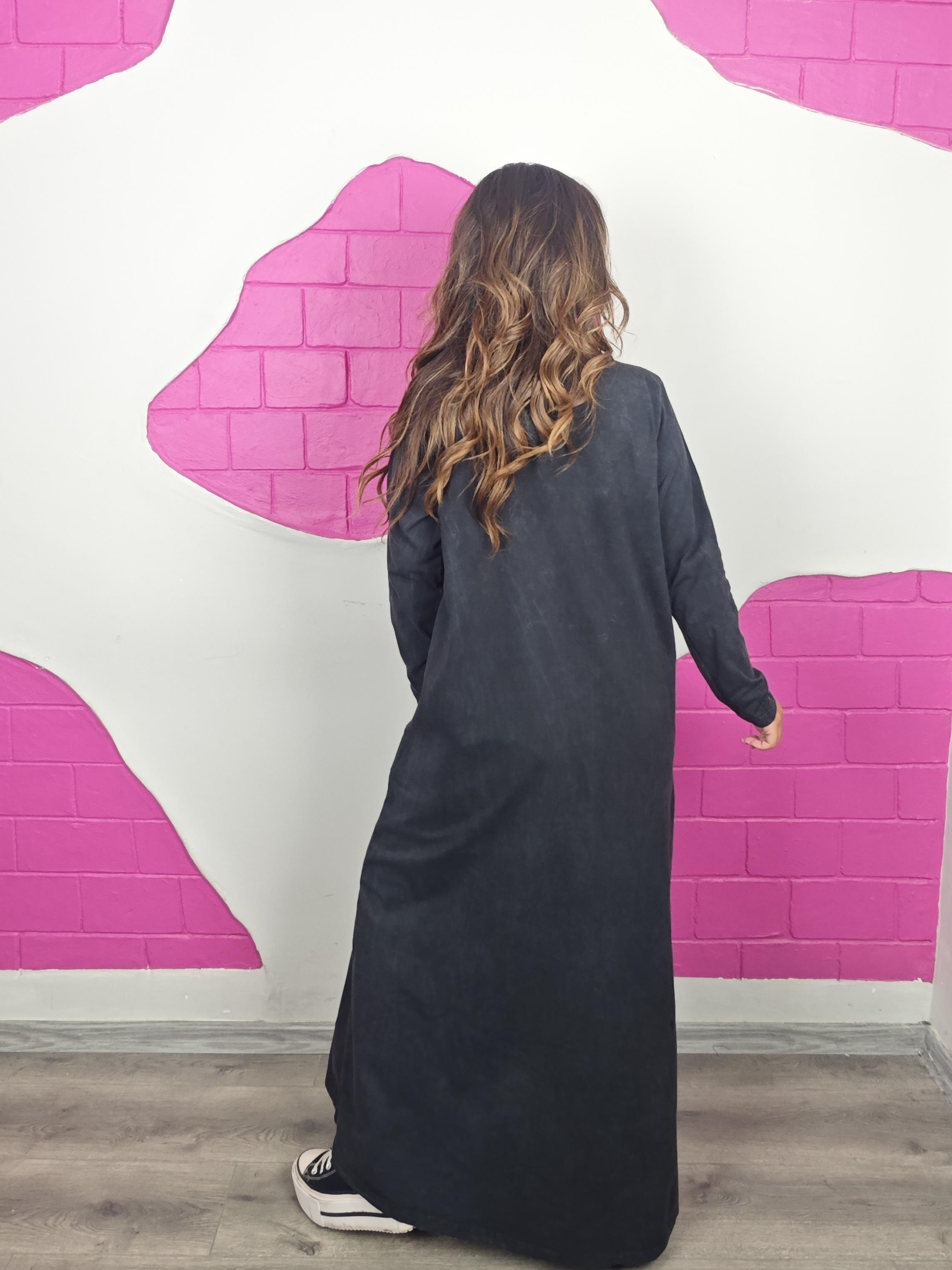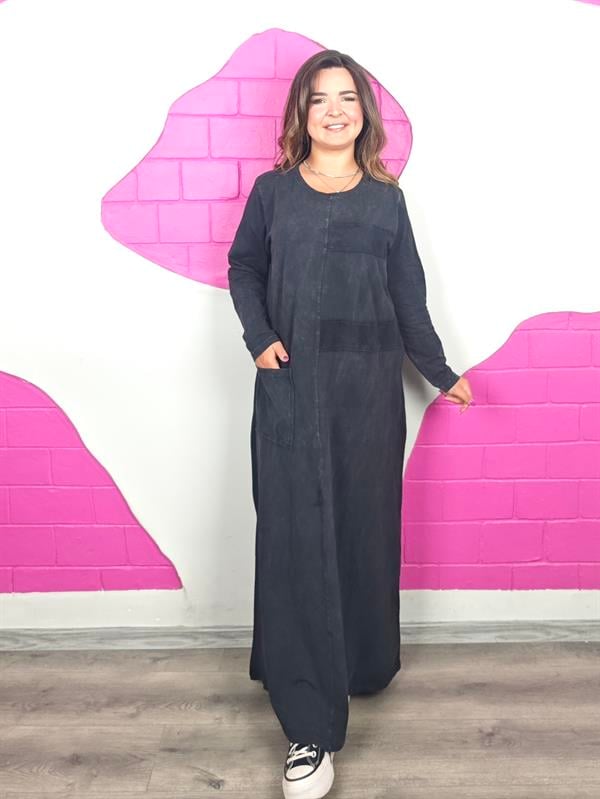 BÜYÜK BEDEN YIKAMALI FİLE ANTRASİT ELBİSE